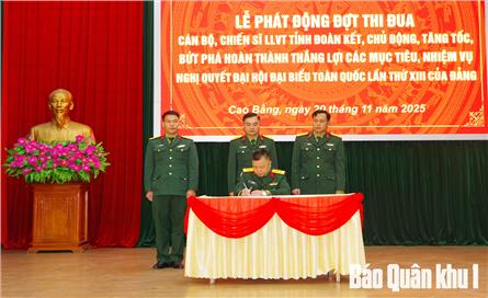 Ngày 20-11, Bộ CHQS tỉnh Cao Bằng tổ chức lễ phát động đợt thi đua tăng tốc, bứt phá hoàn thành thắng lợi các mục tiêu, nhiệm vụ chào mừng kỷ niệm 80 năm Ngày Tổng tuyển cử đầu tiên bầu Quốc hội Việt Nam (06/01/1946 - 06/01/2026) và Đại hội lần thứ XIV của Đảng. Tham dự lễ phát động có Đại tá Văn Khắc Thành, Chỉ huy Trưởng Bộ CHQS tỉnh; Đại tá Phương Nam Ký, Chính ủy Bộ CHQS tỉnh.