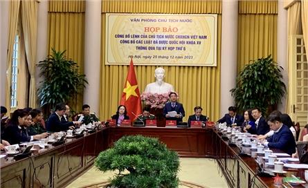 Ngày 25-12, tại Hà Nội, Văn phòng Chủ tịch nước đã tổ chức họp báo công bố lệnh của Chủ tịch nước công bố 7 luật đã được Quốc hội Khóa XV thông qua tại Kỳ họp thứ sáu.
