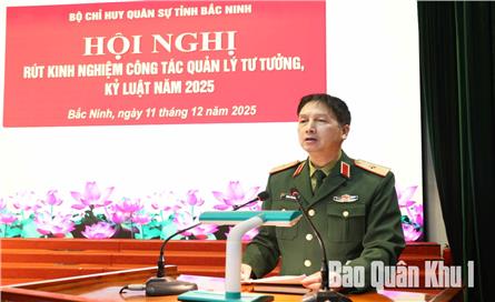 Chiều 11-12, Bộ CHQS tỉnh Bắc Ninh tổ chức Hội nghị rút kinh nghiệm công tác quản lý tư tưởng, kỷ luật năm 2025. Thiếu tướng Dương Văn Quang, Phó Chính ủy Quân khu dự và phát biểu chỉ đạo.