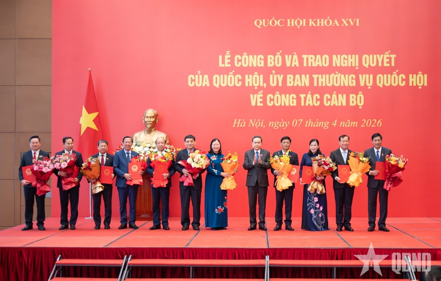 Chiều 7-4, tại Nhà Quốc hội, Ủy viên Bộ Chính trị, Bí thư Đảng ủy Quốc hội, Chủ tịch Quốc hội Trần Thanh Mẫn chủ trì Lễ công bố và trao các Nghị quyết của Quốc hội và Ủy ban Thường vụ Quốc hội về công tác cán bộ.
