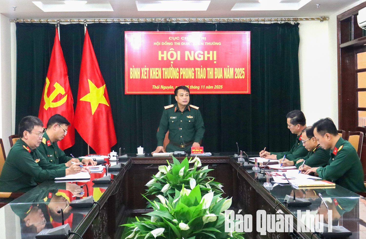 Ngày 6-11, Hội đồng Thi đua - Khen thưởng (TĐKT) Cục Chính trị tổ chức Hội nghị bình xét khen thưởng phong trào Thi đua Quyết thắng năm 2025. Thiếu tướng Ngô Hồng Thái, Phó Chủ nhiệm Chính trị Quân khu, Chủ tịch Hội đồng TĐKT Cục Chính trị chủ trì hội nghị. Tham dự hội nghị có các đồng chí trong Thường vụ Đảng ủy, thủ trưởng Cục Chính trị; thành viên Hội đồng TĐ-KT Cục Chính trị.