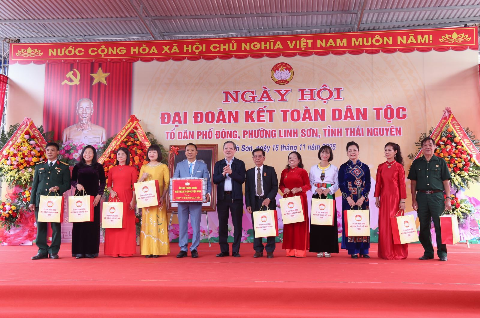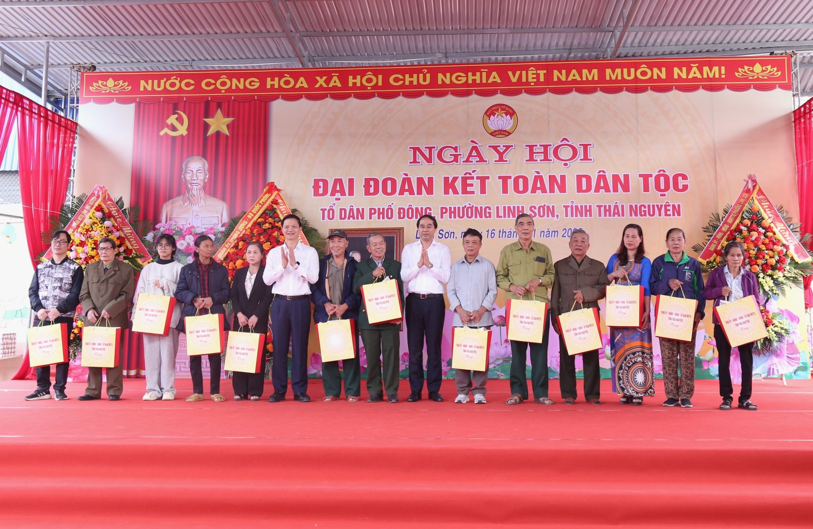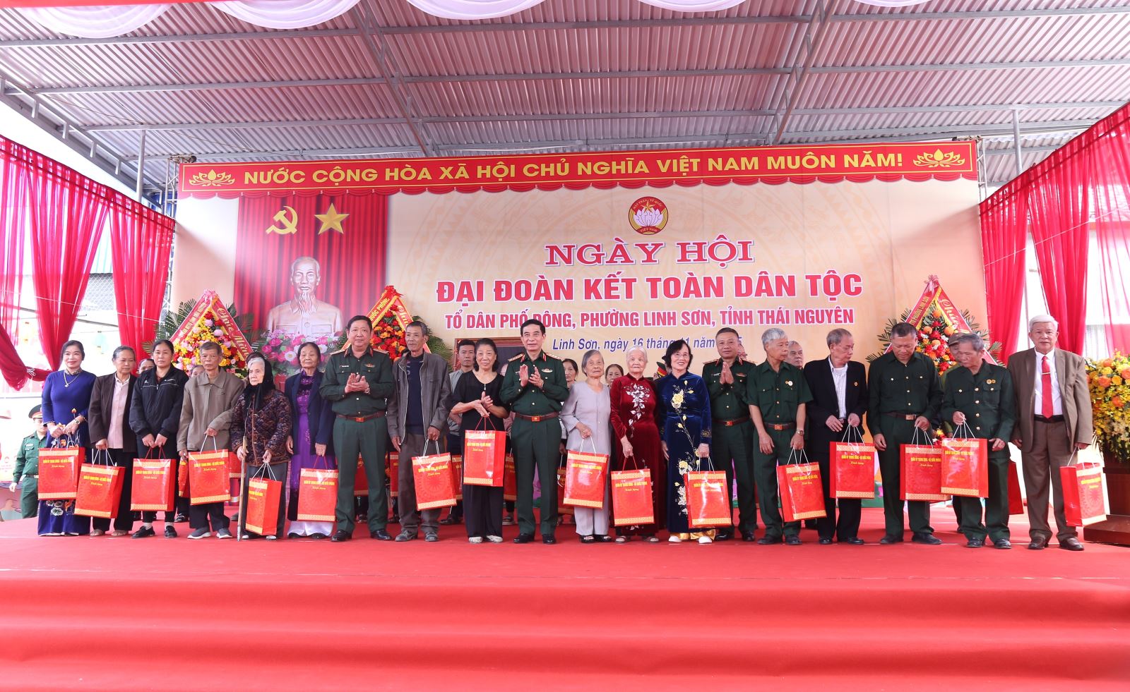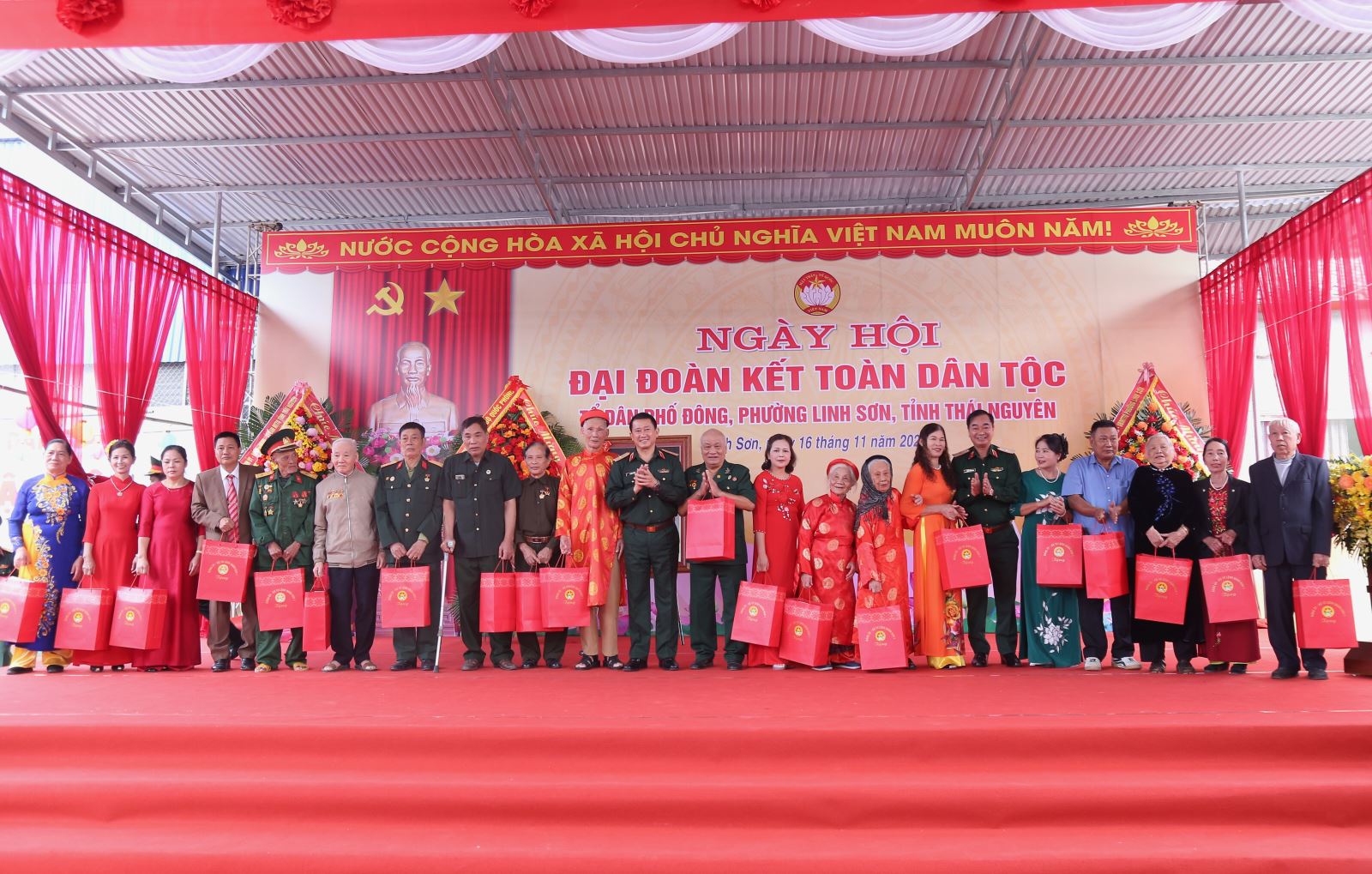 Trong không khí vui tươi, phấn khởi của ngày hội, Đại tướng Phan Văn Giang và các đồng chí lãnh đạo Bộ Tổng Tham mưu QĐND Việt Nam, Tổng cục Chính trị QĐND Việt Nam đã trao quà tặng tổ dân phố Đông, tổ dân phố Mỏ Đá và phường Linh Sơn (tỉnh Thái Nguyên); trao 200 suất quà tặng các gia đình chính sách, gia đình hộ nghèo, cận nghèo, có hoàn cảnh khó khăn, gia đình bị ngập ảnh hưởng do bão lũ trên địa bàn. Ủy ban Trung ương MTTQ Việt Nam, tặng quà tập thể tổ dân phố Đông và 10 gia đình tiêu biểu trong khu dân cư. Bộ tư lệnh Quân khu 1, Bộ tư lệnh 86, tỉnh Thái Nguyên trao quà tặng các tập thể, hộ gia đình, cá nhân thuộc 2 tổ dân phố (trong đó Bộ tư lệnh Quân khu 1 tặng 23 suất quà tặng các gia đình thuộc tổ dân phố Đông và 77 suất quà tặng các gia đình thuộc tổ dân phố Mỏ Đá).