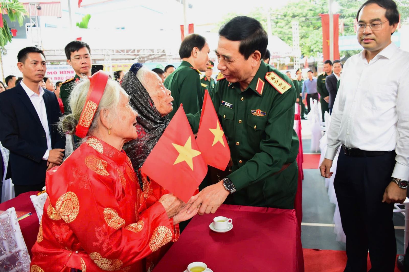 Đại tướng Phan Văn Giang và Thượng tướng Lê Quang Minh trao quà tặng các gia đình chính sách, hộ có hoàn cảnh khó khăn thuộc tổ dân phố Mỏ Đá.