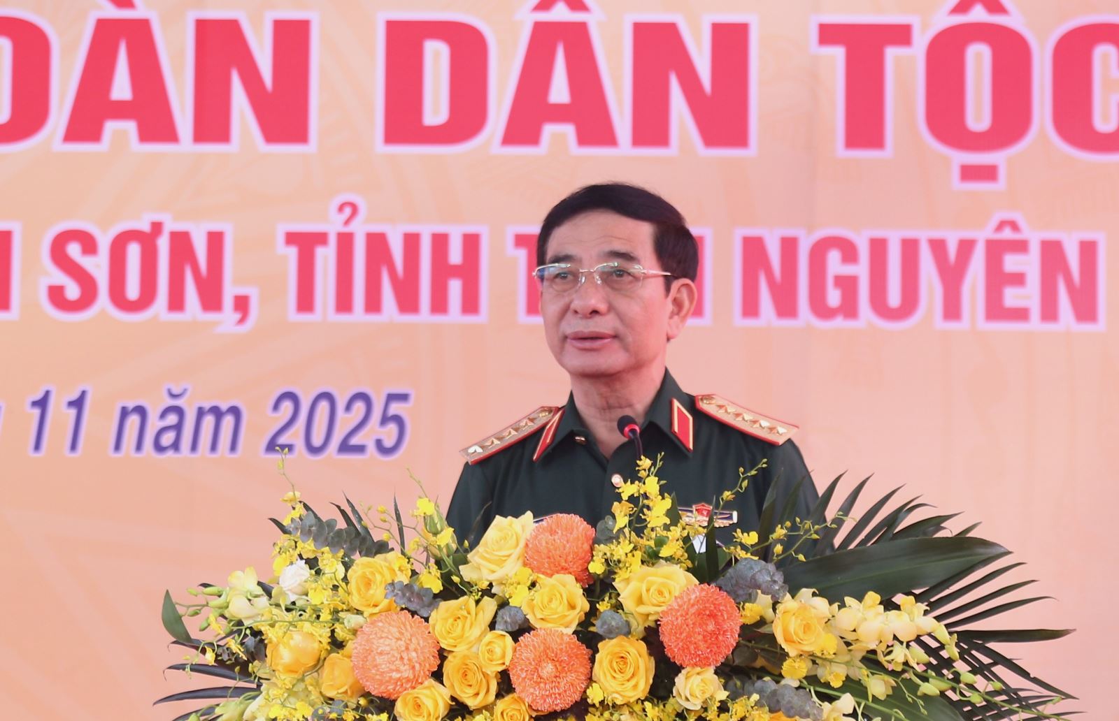 Đại tướng Phan Văn Giang nhấn mạnh: Năm nay, ngày hội diễn ra trong không khí đặc biệt, khi tỉnh Thái Nguyên và tỉnh Bắc Kạn đã hợp nhất, mở ra một chặng đường phát triển mới, kết tinh sức mạnh, bản sắc văn hóa, tinh thần cách mạng và khát vọng vươn lên của hai vùng đất anh hùng. Thái Nguyên hôm nay đang vươn lên mạnh mẽ, trở thành trung tâm công nghiệp lớn của miền Bắc, là điểm sáng về thu hút đầu tư, phát triển kinh tế - xã hội và đổi mới sáng tạo. Tốc độ tăng trưởng kinh tế của tỉnh đạt bình quân khoảng 8%/năm; thu ngân sách năm 2025 ước đạt hơn 26.000 tỷ đồng, tăng 23% so với năm trước. Những kết quả ấy là công sức, tâm huyết của cấp ủy, chính quyền, Mặt trận Tổ quốc và nhất là sự đoàn kết, đồng lòng của các tầng lớp nhân dân.