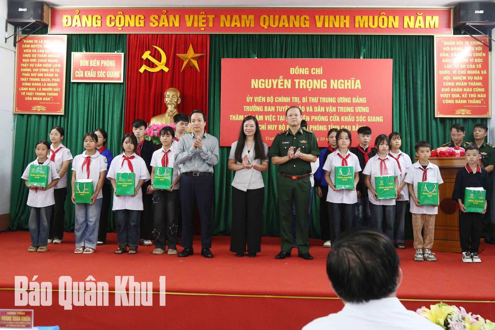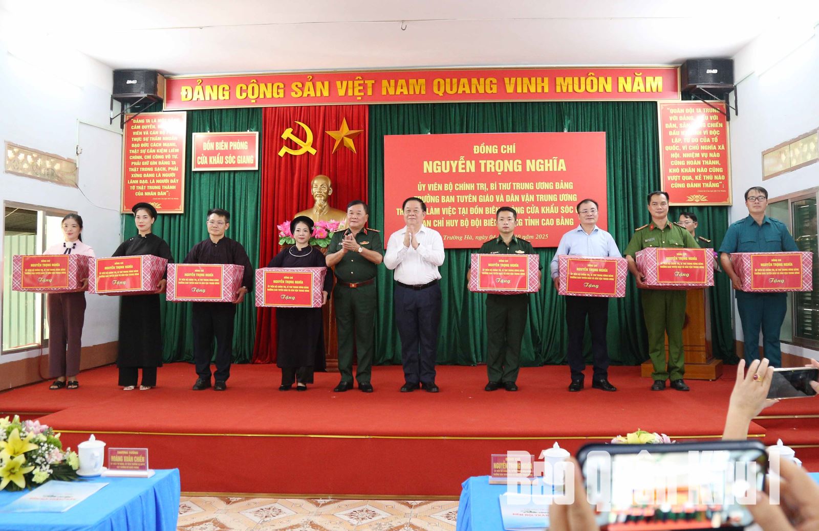 * Trước đó, đồng chí Nguyễn Trọng Nghĩa, Trưởng Ban Tuyên giáo và Dân vận Trung ương đã đến thăm, tặng quà quân, dân trên địa bàn biên giới xã Trường Hà, tỉnh Cao Bằng.