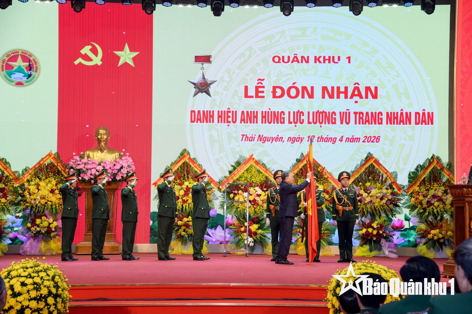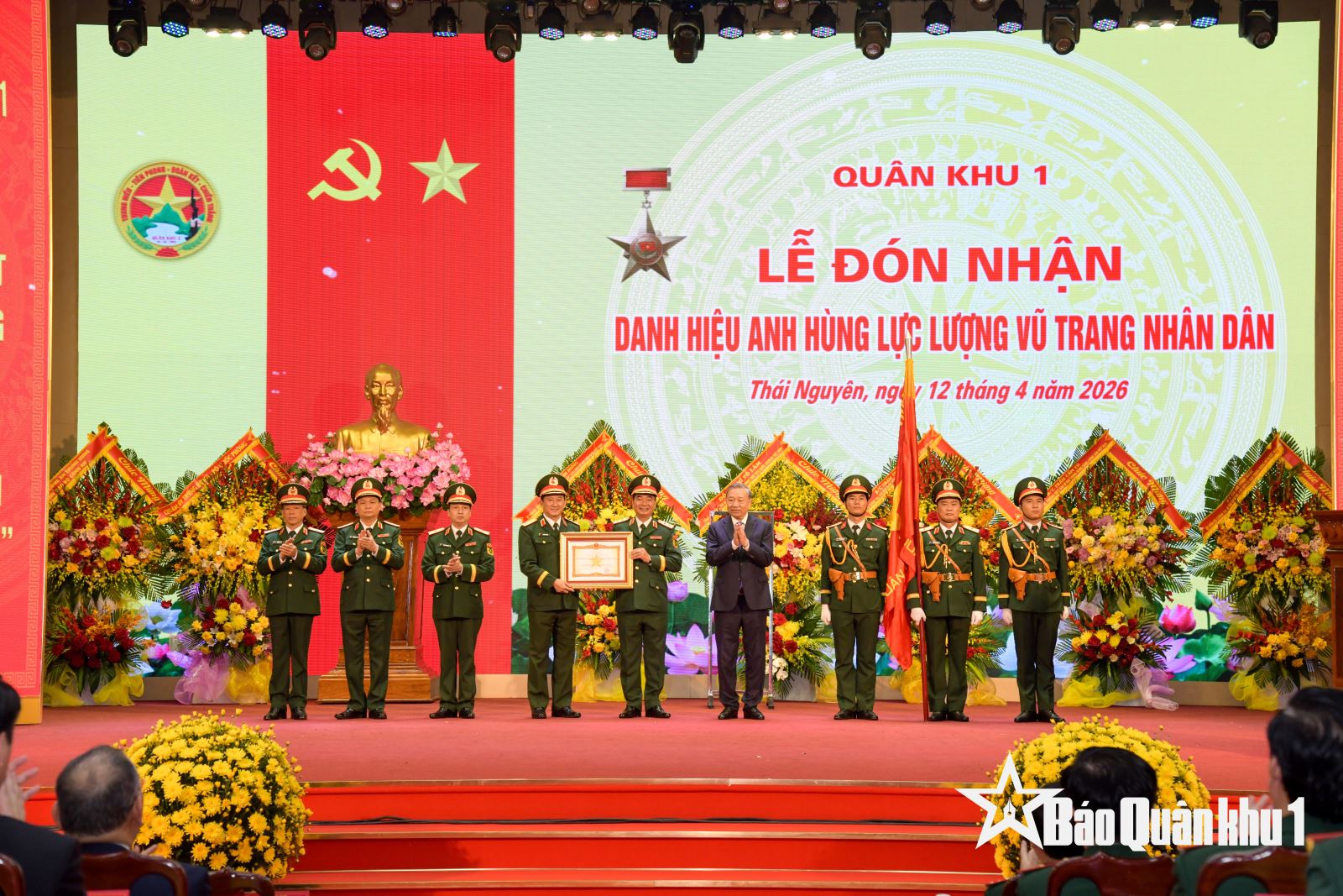 Sáng 12-4, tại tỉnh Thái Nguyên, Đảng ủy, Bộ tư lệnh Quân khu 1 long trọng tổ chức Lễ đón nhận danh hiệu Anh hùng Lực lượng vũ trang nhân dân. Tổng Bí thư, Chủ tịch nước Tô Lâm, Bí thư Quân ủy Trung ương dự và phát biểu chỉ đạo.