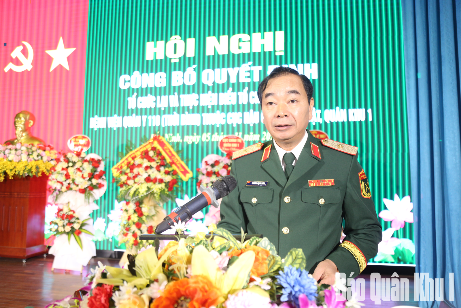 Thiếu tướng Trương Mạnh Dũng, Tư lệnh Quân khu tặng hoa chúc mừng Bệnh viện Quân y 110.