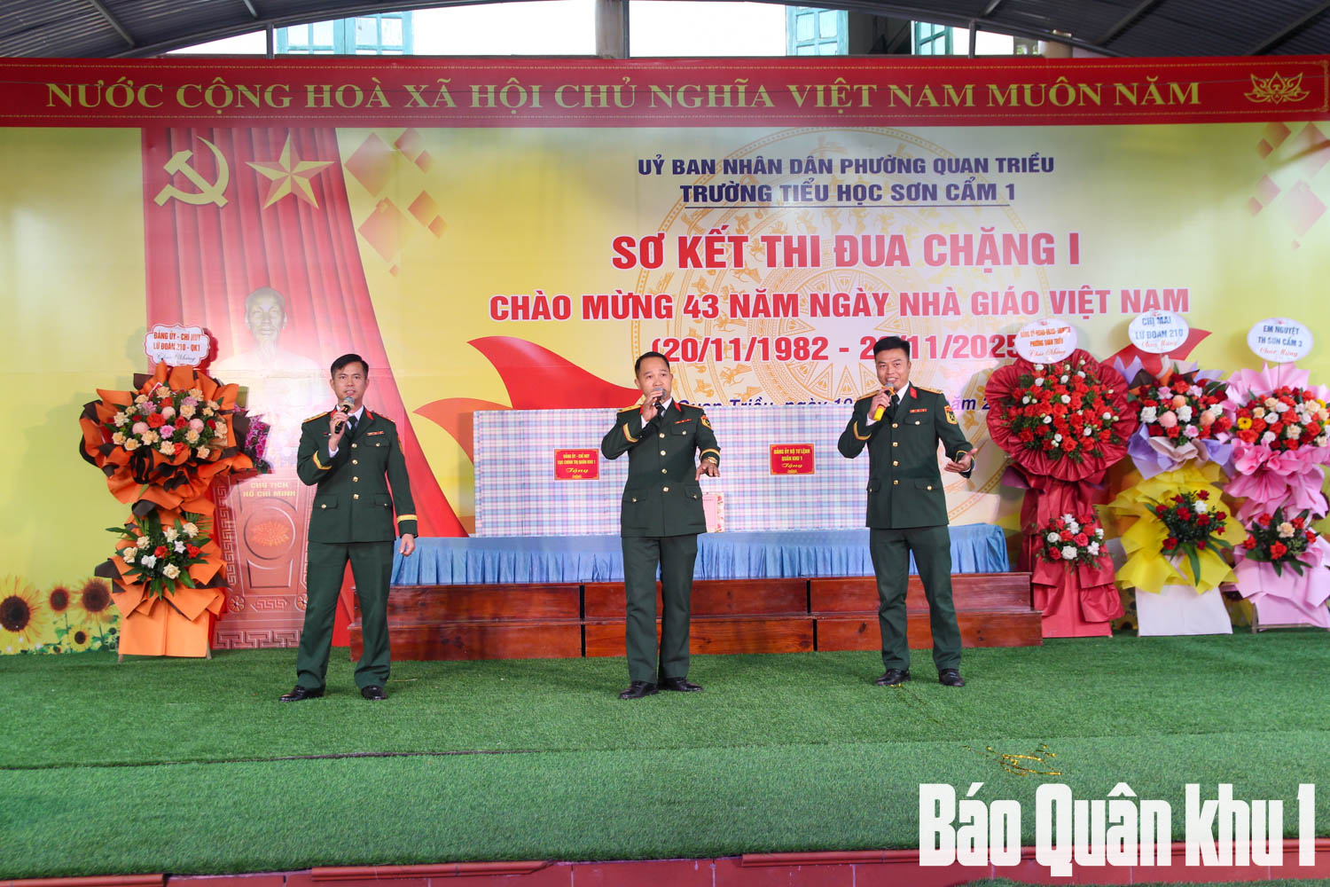 Nhân dịp kỷ niệm 43 năm Ngày Nhà giáo Việt Nam (20-11-1982/20-11-2025), ngày 19-11, thừa uỷ quyền của thủ trưởng Bộ tư lệnh Quân khu, đoàn công tác do Đại tá Nguyễn Văn Tâm, Trưởng phòng Dân vận, Cục Chính trị Quân khu làm trưởng đoàn đã tới dự chương trình Sơ kết thi đua chặng 1 và chào mừng kỷ niệm Ngày Nhà giáo Việt Nam của Trường tiểu học Sơn Cẩm 1, phường Quan Triều, tỉnh Thái Nguyên.