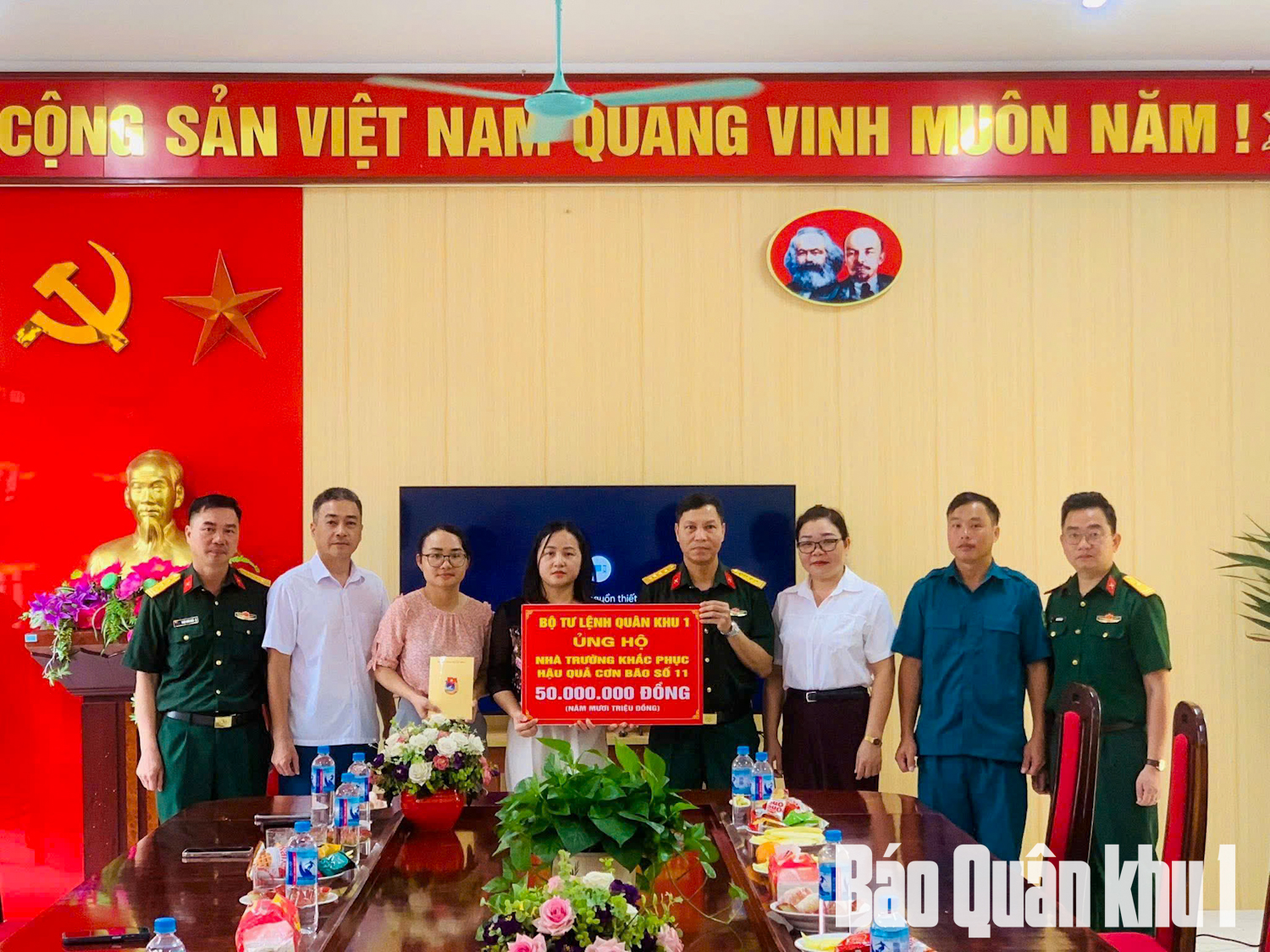 Đại diện lãnh đạo hai nhà trường bày tỏ xúc động, cảm ơn sự quan tâm, chia sẻ kịp thời của Bộ Tư lệnh Quân khu 1 và Bộ CHQS tỉnh Thái Nguyên; đây là nguồn động viên to lớn, tiếp thêm nghị lực để thầy và trò vượt qua khó khăn, hoàn thành tốt nhiệm vụ năm học mới.