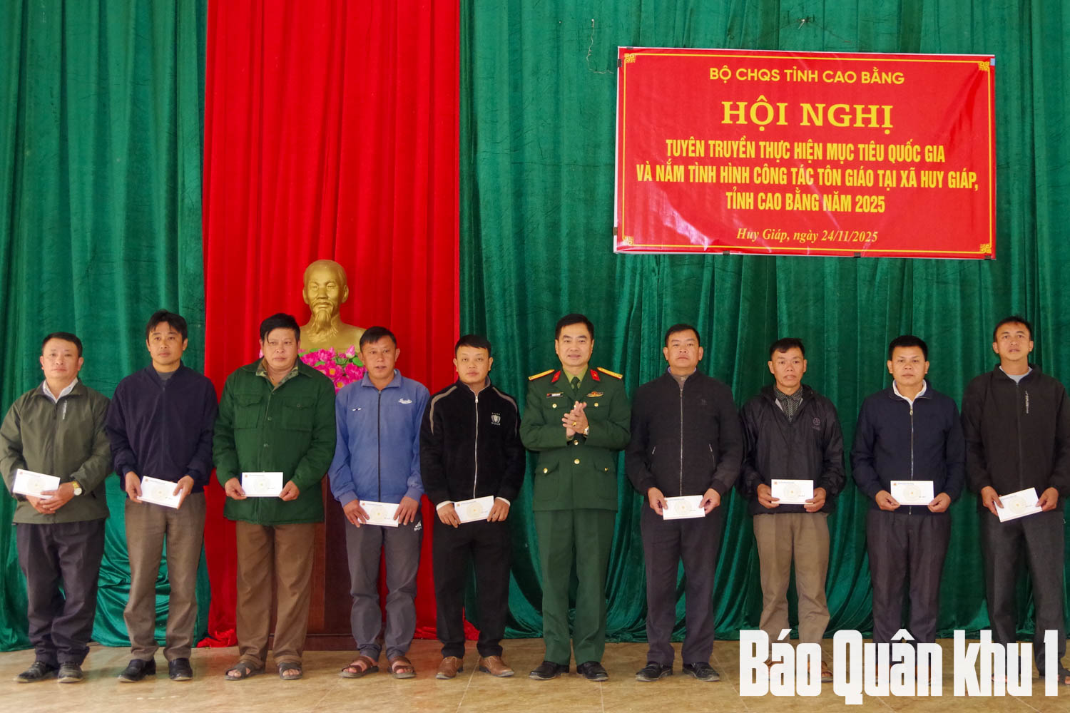 Ngày 24-11, đoàn công tác Bộ CHQS tỉnh Cao Bằng do Đại tá Phương Nam Ký, Chính ủy Bộ CHQS tỉnh làm trưởng đoàn đã đến nắm tình hình thực hiện công tác tôn giáo và tuyên truyền, vận động đồng bào dân tộc thiểu số và miền núi thực hiện các Chương trình mục tiêu quốc gia phát triển kinh tế, xã hội vùng đồng bào dân tộc thiểu số và miền núi năm 2025 tại xã Huy Giáp và xã Ca Thành.