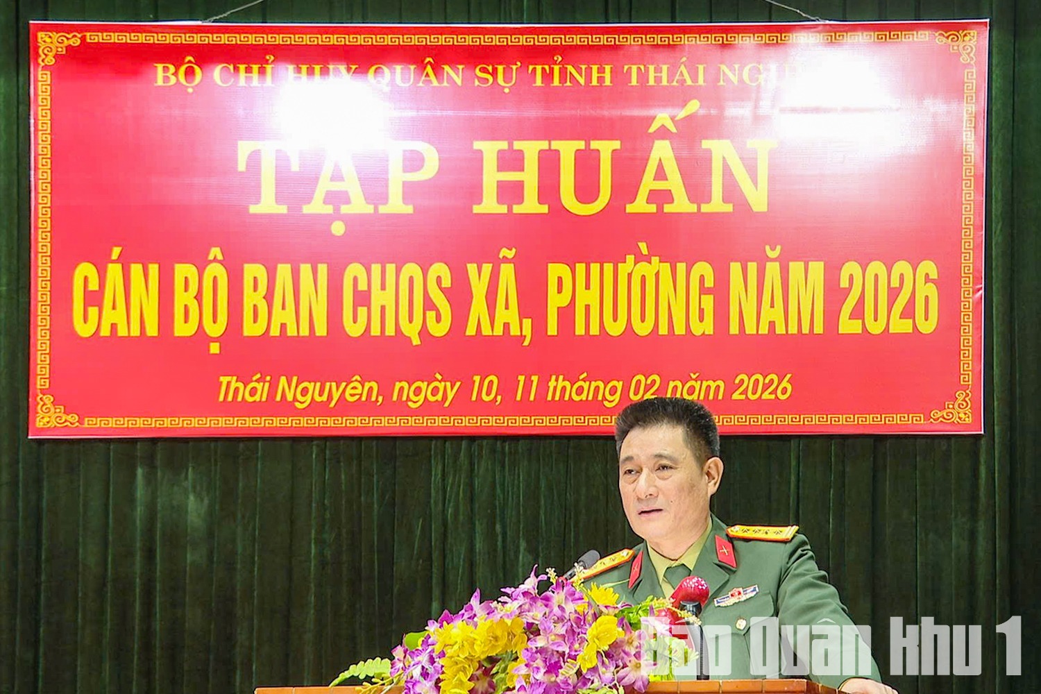 Ngày 10-2, Bộ CHQS tỉnh Thái Nguyên tổ chức khai mạc lớp tập huấn cán bộ Ban CHQS xã, phường năm 2026. Đại tá Ngô Tuấn Anh, Chỉ huy trưởng Bộ CHQS tỉnh Thái Nguyên dự và phát biểu chỉ đạo.