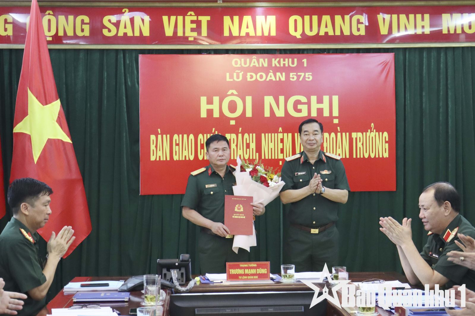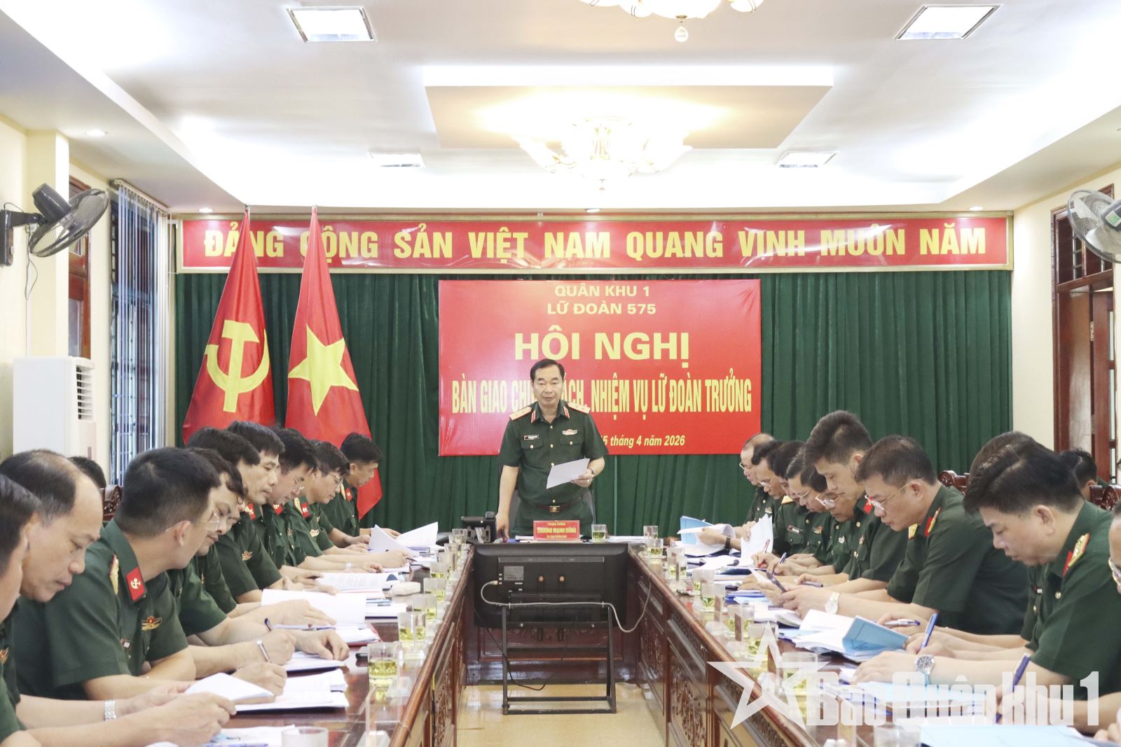 Chiều 15-4, Lữ đoàn Công binh 575 tổ chức hội nghị bàn giao chức trách, nhiệm vụ Lữ đoàn trưởng. Trung tướng Trương Mạnh Dũng, Tư lệnh Quân khu chủ trì hội nghị.