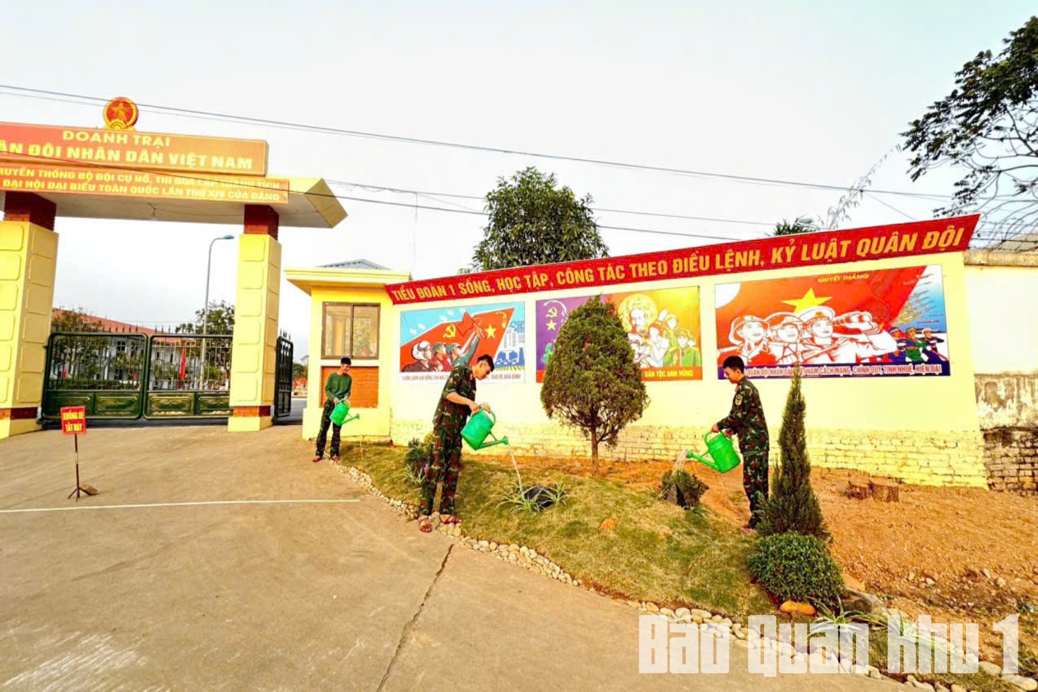 Cán bộ, chiến sĩ Trung đoàn 832 tích cực củng cố cảnh quan môi trường chuẩn bị đón nhận chiến sĩ mới.