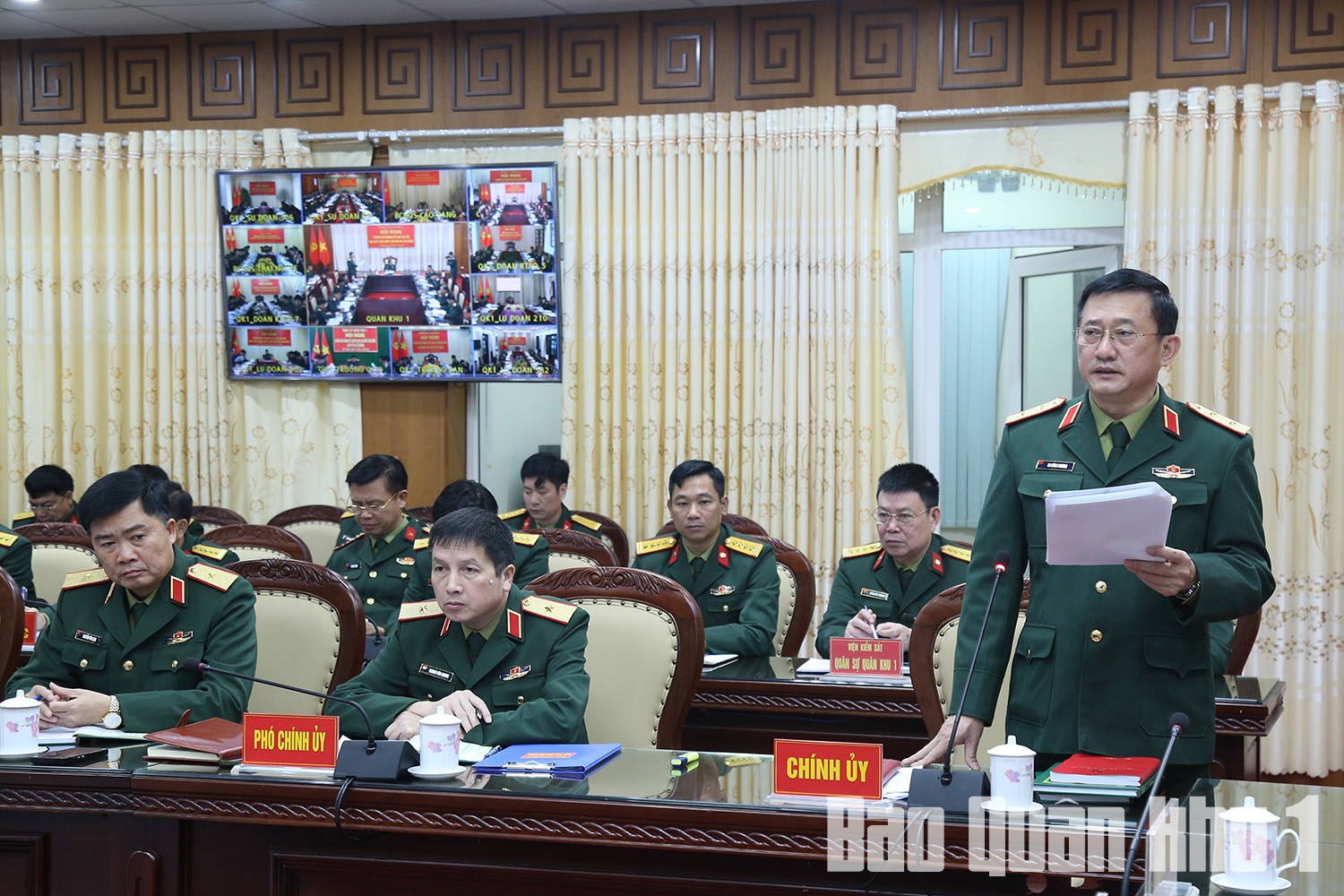 Đồng chí Chính ủy Quân khu yêu cầu sau hội nghị, cấp ủy, chỉ huy các cấp tổ chức quán triệt, tuyên truyền sâu rộng kết quả Đại hội XIV đến cán bộ, đảng viên, quần chúng trong đơn vị bằng nhiều hình thức phù hợp; gắn việc học tập, quán triệt nghị quyết với xây dựng chương trình, kế hoạch hành động cụ thể, sát thực tiễn, có lộ trình, giải pháp rõ ràng, khả thi. Tập trung lãnh đạo thực hiện thắng lợi nhiệm vụ sẵn sàng chiến đấu, quản lý, bảo vệ vững chắc địa bàn; tiếp tục đổi mới, nâng cao chất lượng huấn luyện, xây dựng chính quy, chấp hành kỷ luật; chủ động nắm, dự báo, xử lý hiệu quả các tình huống, không để bị động, bất ngờ.