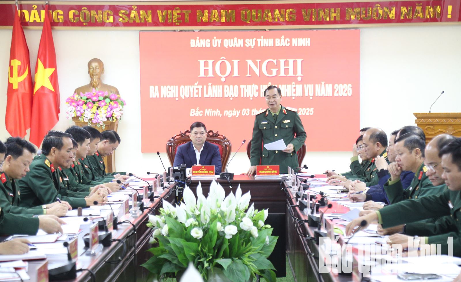 Ngày 3-12, Đảng ủy Quân sự tỉnh Bắc Ninh ra Nghị quyết lãnh đạo thực hiện nhiệm vụ năm 2026. Đồng chí Nguyễn Hồng Thái, Ủy viên Trung ương Đảng, Bí thư Tỉnh ủy, Bí thư Đảng ủy Quân sự tỉnh Bắc Ninh chủ trì hội nghị; Thiếu tướng Trương Mạnh Dũng, Tư lệnh Quân khu dự và phát biểu chỉ đạo hội nghị.