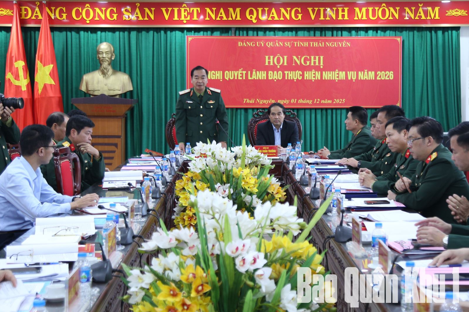 Chiều 1-12, Đảng ủy Quân sự tỉnh Thái Nguyên tổ chức hội nghị ra nghị quyết lãnh đạo thực hiện nhiệm vụ năm 2026. thực hiện nhiệm vụ năm 2026. Thiếu tướng Trương Mạnh Dũng, Tư lệnh Quân khu 1 dự chỉ đạo hội nghị; đồng chí Trịnh Xuân Trường, Bí thư Tỉnh ủy Thái Nguyên chủ trì hội nghị.