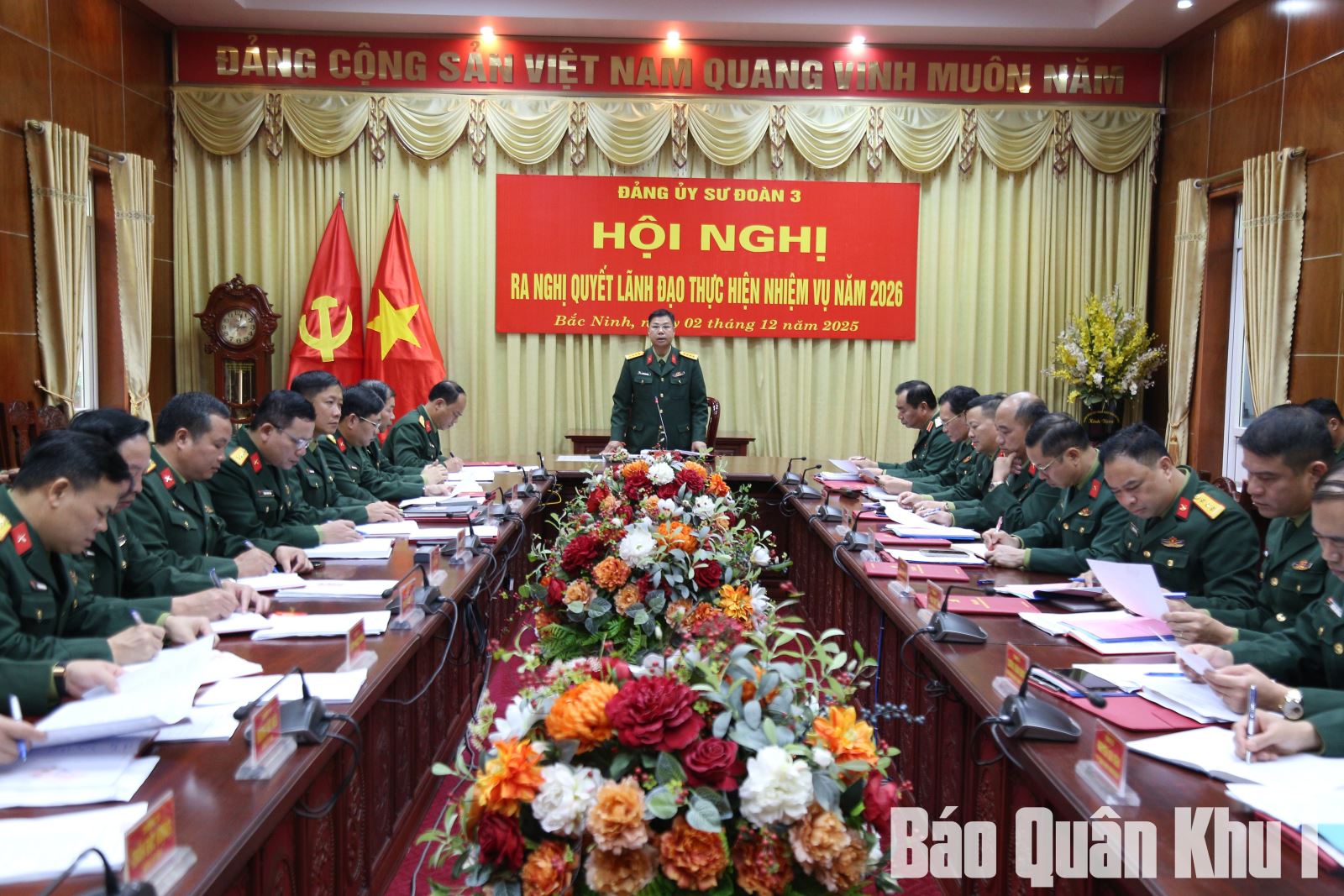 Ngày 2-11, Đảng ủy Sư đoàn 3 tổ chức hội nghị ra nghị quyết lãnh đạo thực hiện nhiệm vụ năm 2026. Thiếu tướng Trương Mạnh Dũng, Tư lệnh Quân khu dự và phát biểu chỉ đạo hội nghị.