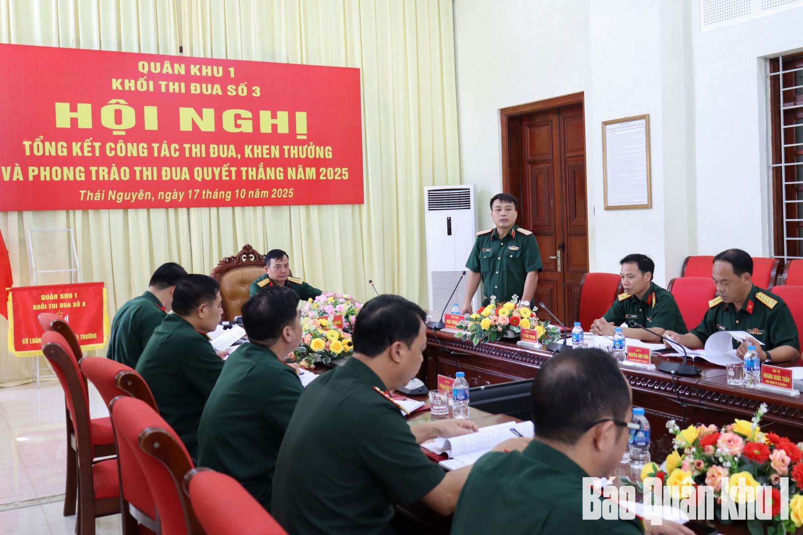 Phát biểu chỉ đạo tại hội nghị, Thiếu tướng Ngô Hồng Thái biểu dương, đánh giá cao hoạt động thi đua khen thưởng và phong trào thi đua quyết thắng của các đơn vị khối thi đua số 3, năm 2025. Đồng chí Phó Chỉ nhiệm Chính trị Quân khu đề nghị: Trong năm 2026, các đơn vị khối thi đua số 3 cần phát huy hơn nữa tinh thần đoàn kết, đồng lòng, thi đua hoàn thành thắng lợi các nhiệm vụ chính trị trọng tâm; đẩy mạnh thi đua xây dựng đơn vị vững mạnh về chính trị, tư tưởng, đạo đức, tổ chức cán bộ; nâng cao năng lực lãnh đạo, sức chiến đấu của các cấp ủy, tổ chức đảng, phát huy vai trò tiền phong, gương mẫu, tự phê bình và phê bình của đội ngũ cán bộ đảng viên. Kịp thời biểu dương khen thưởng những tập thể, cá nhân hoàn thành xuất sắc nhiệm vụ, xây dựng Đảng bộ đạt trong sạch vững mạnh, đơn vị vững mạnh toàn diện “mẫu mực, tiêu biểu”.