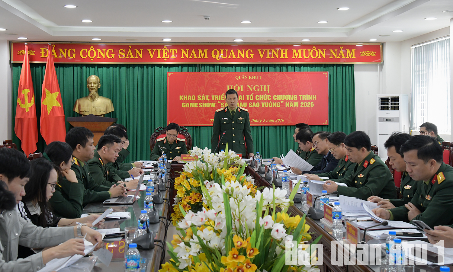 Sáng 10-3, tại Bộ CHQS tỉnh Thái Nguyên, Quân khu phối hợp với Cục Dân quân Tự vệ (DQTV) - Bộ Tổng Tham mưu, Trung tâm Phát thanh - Truyền hình Quân đội tổ chức hội nghị khảo sát địa điểm và triển khai tổ chức Chương trình Gameshow “Sắc màu Sao Vuông” trong lực lượng vũ trang (LLVT) Quân khu năm 2026. Thiếu tướng Trần Xuân Mạnh, Phó Tư lệnh kiêm Tham mưu trưởng Quân khu, Trưởng ban tổ chức chương trình chủ trì hội nghị.
