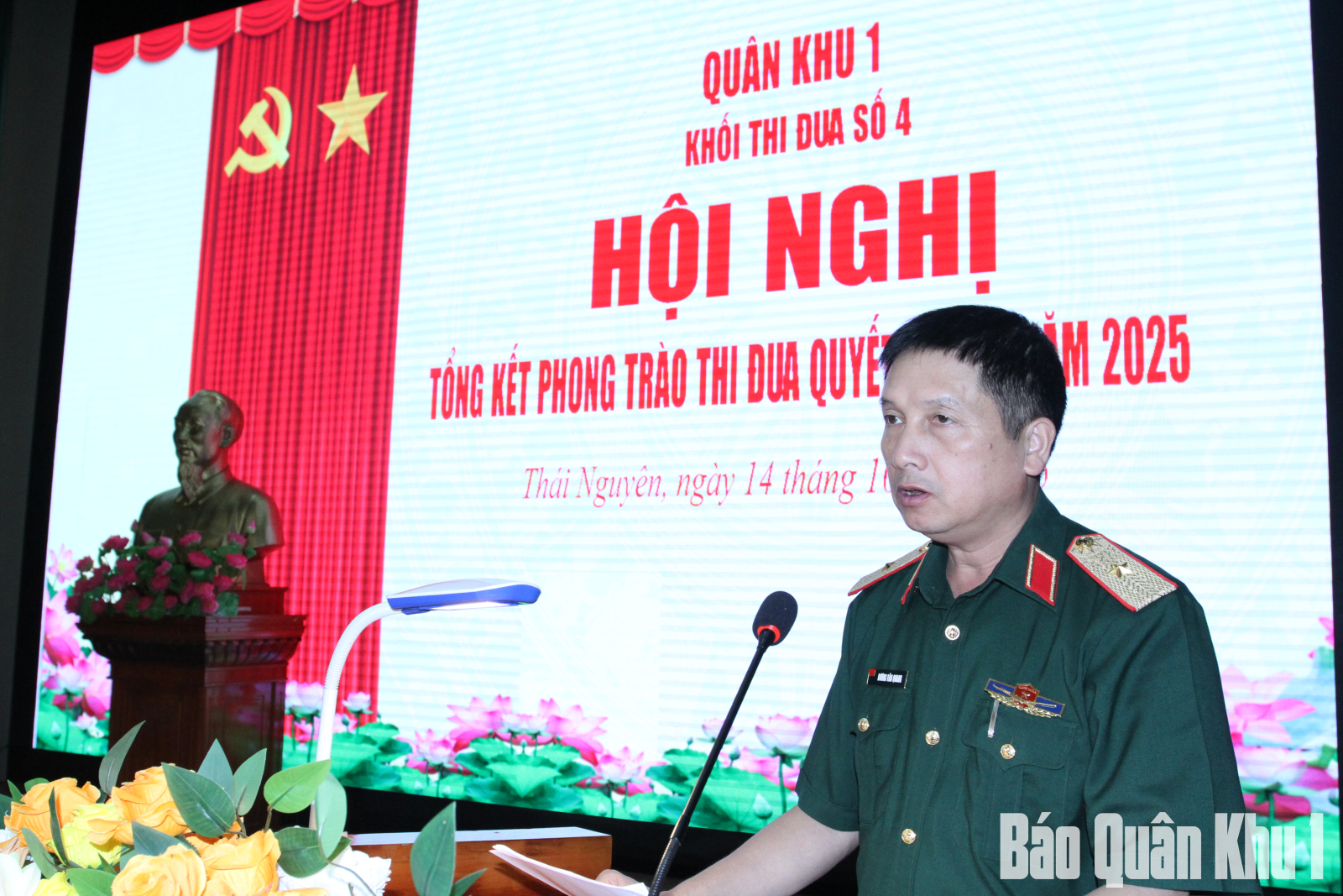 Năm 2025, các cơ quan, đơn vị trong Khối thi đua số 4 đã quán triệt sâu sắc các chỉ thị, nghị quyết của Đảng, Quân ủy Trung ương, Bộ Quốc phòng, hướng dẫn của Cục Chính trị Quân khu; chủ động bám sát nhiệm vụ chính trị, đặc điểm tình hình, phát động và tổ chức thực hiện phong trào Thi đua Quyết thắng với nhiều nội dung, biện pháp sáng tạo, hiệu quả. 100% cơ quan, đơn vị trong khối hoàn thành tốt và xuất sắc nhiệm vụ. Nổi bật, các đơn vị đã chủ động khắc phục hậu quả thiên tai, bão lũ; tích cực tham gia công tác dân vận, giúp nhân dân khắc phục khó khăn, củng cố “thế trận lòng dân” trên địa bàn đóng quân.