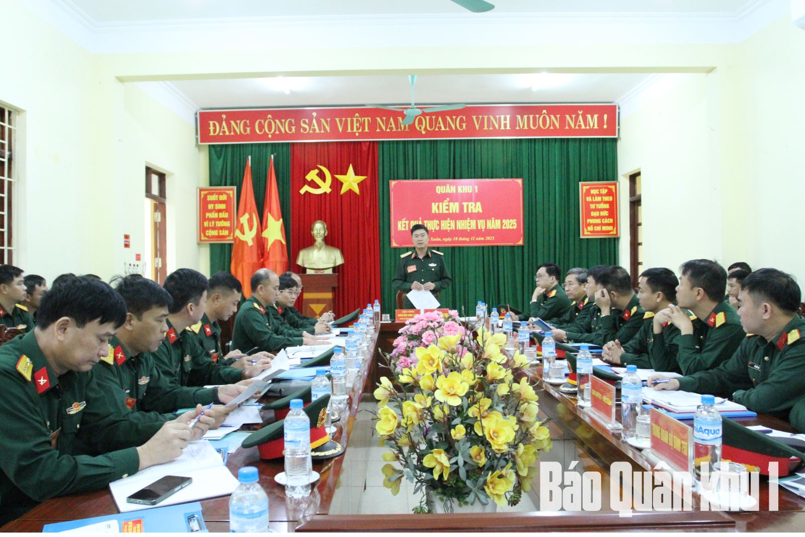 Ngày 18-11, đoàn công tác Quân khu do Thiếu tướng Nguyễn Văn Lịch, Phó Tư lệnh Quân khu làm trưởng đoàn tiến hành kiểm tra toàn diện kết quả thực hiện nhiệm vụ công tác quân sự, quốc phòng địa phương năm 2025 đối với Trung đoàn 750 và Ban Chỉ huy PTKV 1-Đức Xuân (Bộ CHQS tỉnh Thái Nguyên).