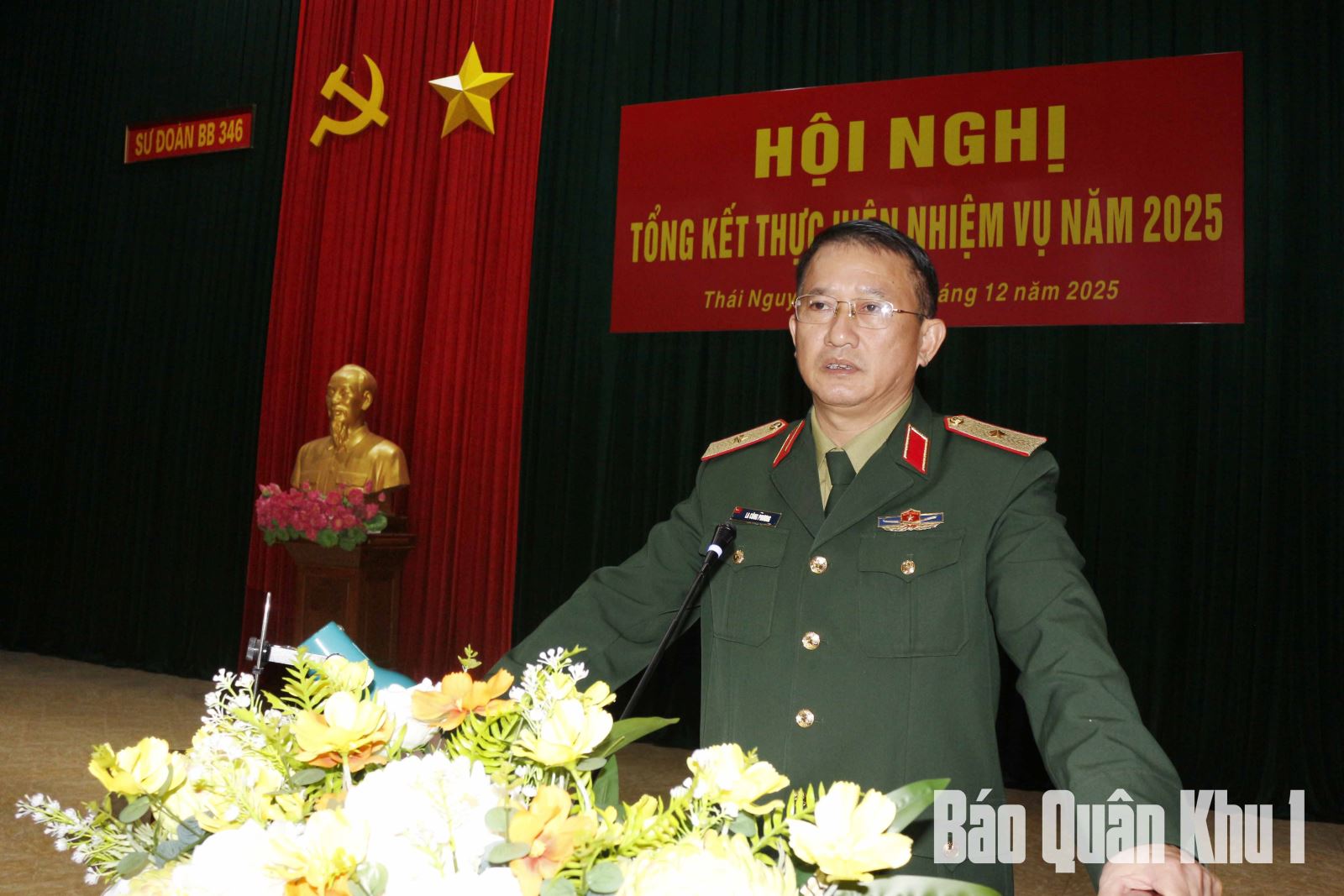 Chiều 2-12, Sư đoàn 346, Quân khu 1 tổ chức Hội nghị tổng kết thực hiện nhiệm vụ năm 2025. Thiếu tướng La Công Phương, Bí thư Đảng ủy, Chính ủy Quân khu dự và phát biểu chỉ đạo.