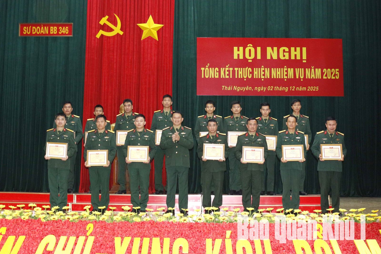 Trong năm 2025, Sư đoàn 346 thực hiện đồng thời nhiều nhiệm vụ trên các mặt công tác, hoàn thành tốt các nhiệm vụ, nổi bật như: Duy trì nghiêm chế độ trực SSCĐ, thường xuyên luyện tập các phương án SSCĐ, cứu hộ cứu nạn, đáp ứng yêu cầu nhiệm vụ trong mọi tình huống; tổ chức tập huấn, nâng cao năng lực quản lý, điều hành và phương pháp huấn luyện cho hơn 930 lượt cán bộ các cấp; huấn luyện cho các đối tượng bảo đảm đúng, đủ nội dung, thời gian, chất lượng huấn luyện ngày càng được nâng lên. Tổ chức kiểm tra 3 tiếng nổ cho chiến sĩ mới, bắn súng Tiêu liên AK bài 1 đạt khá, ném lựu đạn, đánh thuốc nổ bài 1 đạt giỏi; diễn tập CH-CQ, diễn tập bắn đạn hơi các cấp hoàn thành tốt nhiệm vụ; duy trì nghiêm chế độ, nền nếp hoạt động CTĐ, CTCT, chủ động nắm tình hình, tư tưởng cho bộ đội, thực hiện một số mô hình trong giáo dục chính trị phát huy hiệu quả. Công tác quản lý kỷ luật, xây dựng nền nếp chính quy, chấp hành pháp luật Nhà nước, kỷ luật Quân đội được quán triệt, triên khai thực hiện chặt chẽ, duy trì nghiêm túc; tham gia giúp đỡ nhân dân khắc phục hậu quả cơn bão số 11. Bảo đảm tốt công tác hậu cần, kỹ thuật cho các nhiệm vụ thường xuyên và đột xuất của đơn vị.