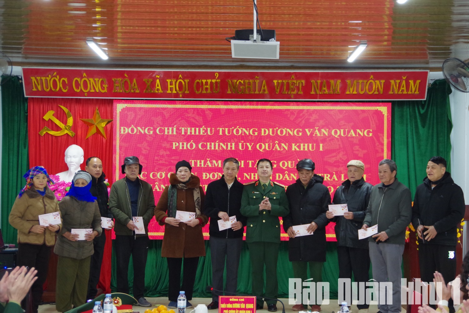 Thiếu tướng Dương Văn Quang, Phó Chính ủy Quân khu trao quà của Đảng ủy, Bộ Tư lệnh Quân khu tặng các hộ gia đình có hoàn cảnh đặc biệt khó khăn, gia đình chính sách xã Trà Lĩnh (Cao Bằng).