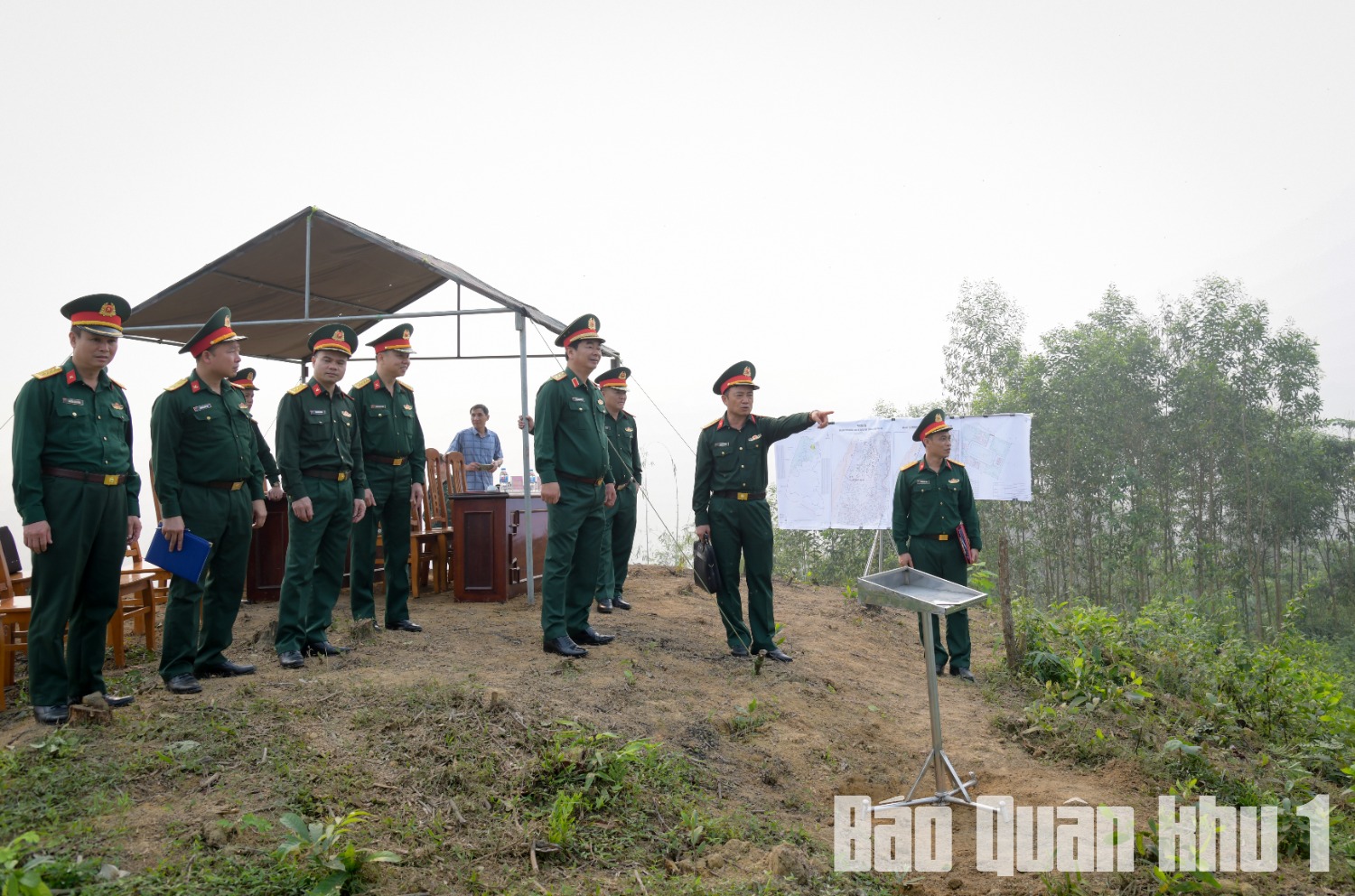 Trung tướng Trương Mạnh Dũng, Tư lệnh Quân khu cùng đoàn công tác kiểm tra tiến độ triển khai thực hiện dự án “Thao trường huấn luyện, diễn tập bắn đạn thật đến cấp đại đội bộ binh của Sư đoàn 346” tại xã Lam Vỹ, tỉnh Thái Nguyên.