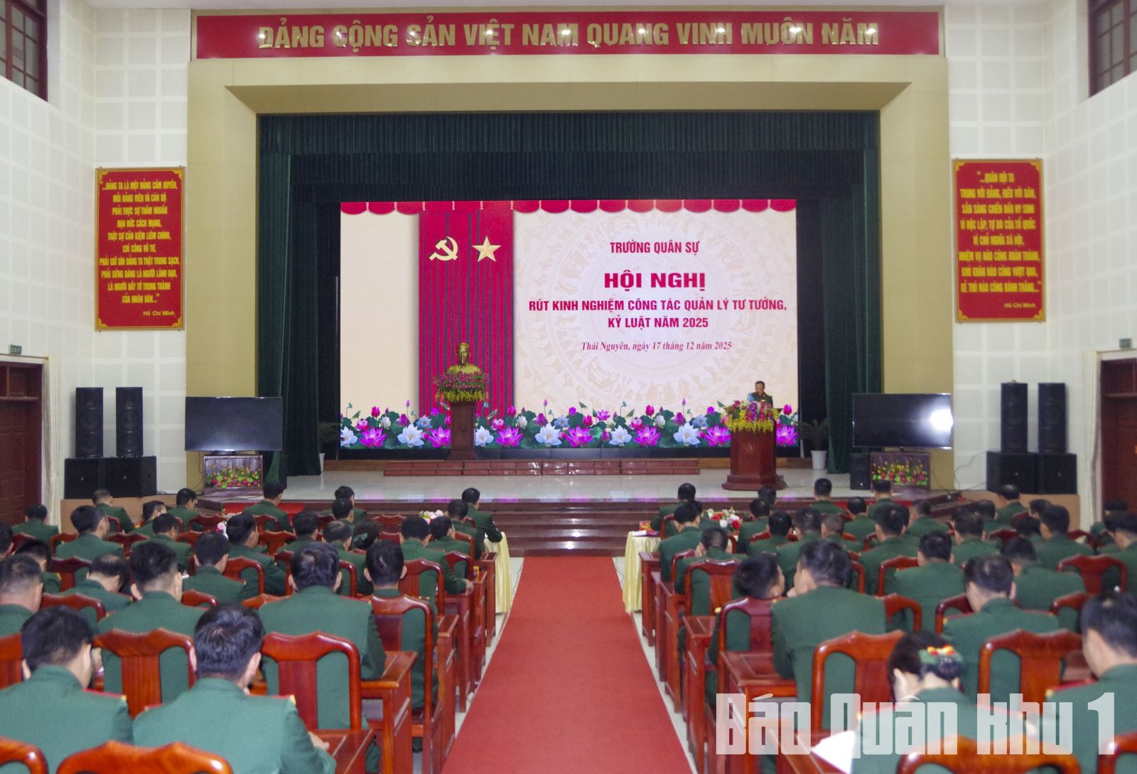 Ngày 17-12, Trường Quân sự Quân khu tổ chức Hội nghị rút kinh nghiệm công tác quản lý tư tưởng, kỷ luật năm 2025. Thiếu tướng Dương Văn Quang, Phó Chính ủy Quân khu dự và chỉ đạo hội nghị. Đại tá Trần Thanh, Bí thư Đảng ủy, Chính ủy Nhà trường chủ trì hội nghị.