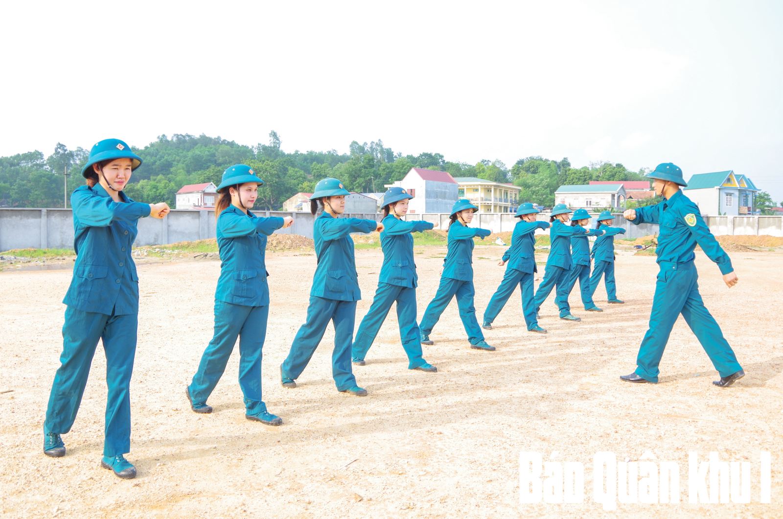 Dân quân tự vệ xã Phú Bình (Thái Nguyên) huấn luyện điều lệnh đội ngũ. Ảnh: ĐỨC THÚY