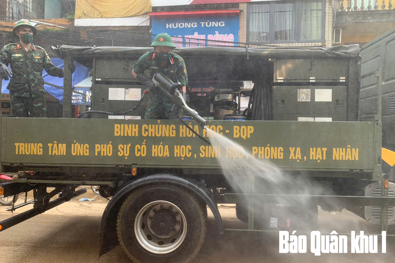 Thực hiện chỉ đạo của Bộ Quốc phòng, chiều 11-10, Lữ đoàn 86 (Binh chủng Hóa học) huy động hơn 100 cán bộ, chiến sĩ cùng 6 phương tiện đặc chủng và lượng lớn hóa chất khử khuẩn cơ động tại địa bàn phường Phan Đình Phùng (tỉnh Thái Nguyên).