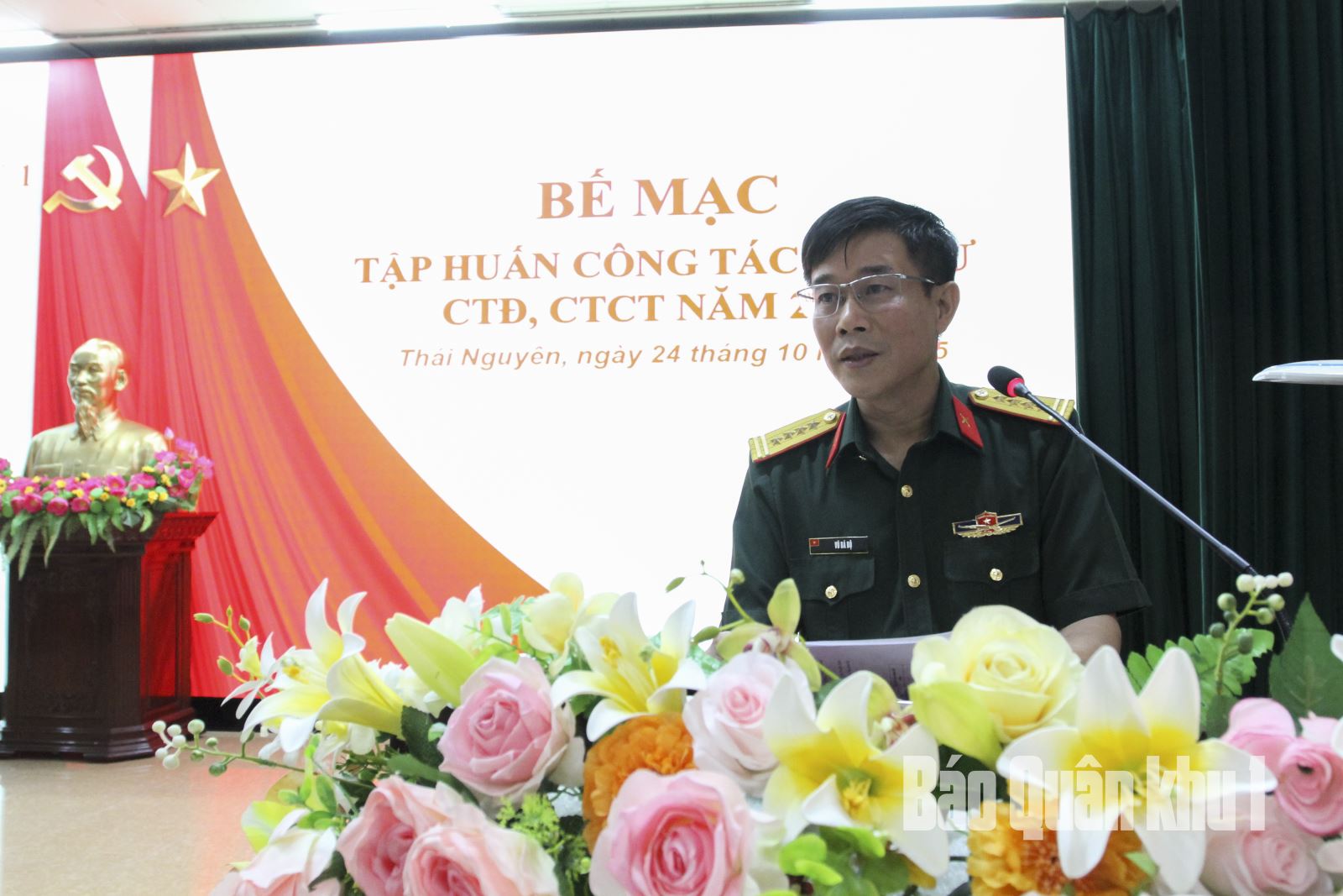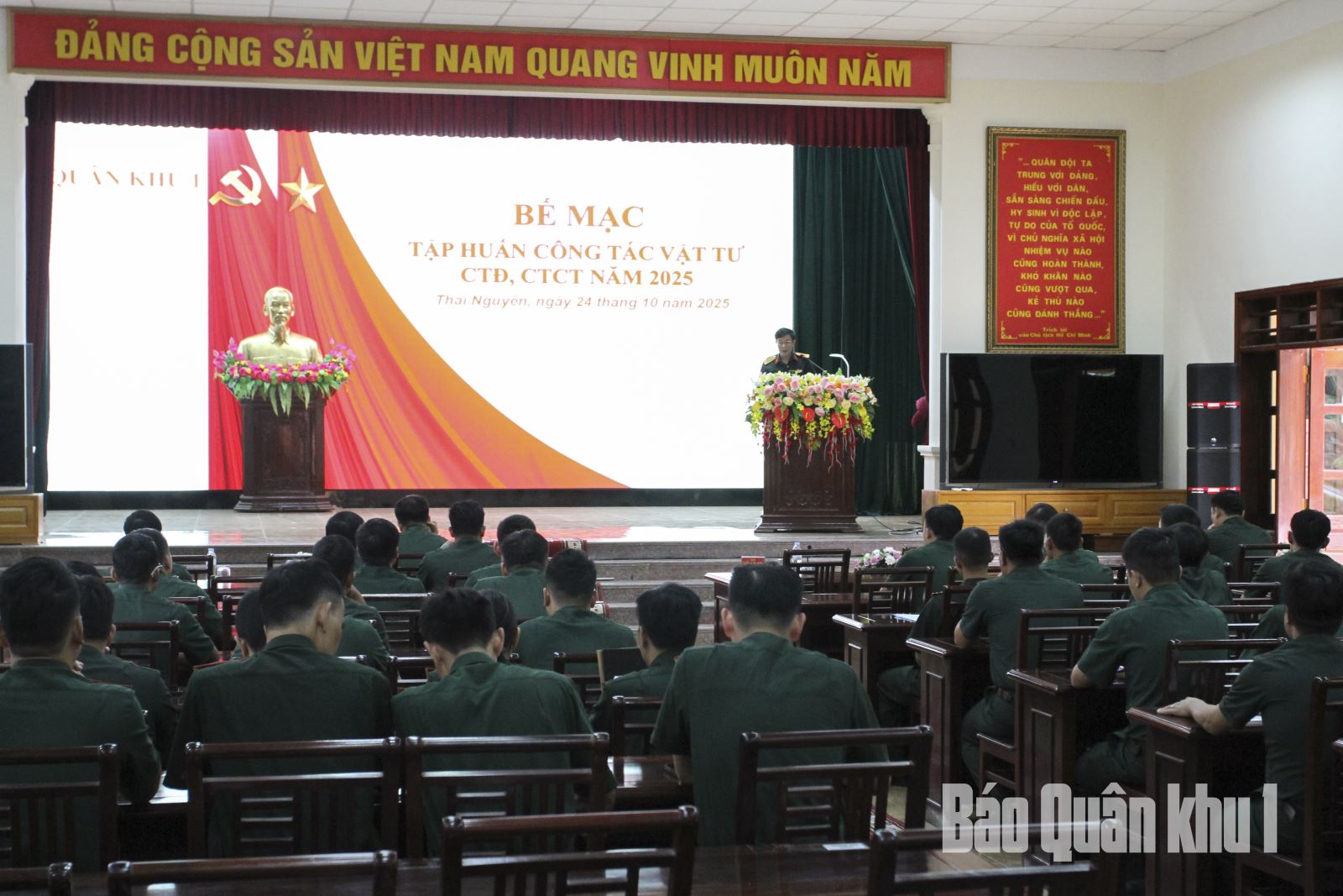 Ngày 24-10, Quân khu bế mạc lớp tập huấn công tác vật tư CTĐ, CTCT năm 2025. Dự và chỉ đạo bế mạc có Đại tá Vũ Bá Bộ, Phó Chủ nhiệm Chính trị Quân khu.