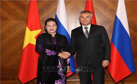 Chiều 11/12 theo giờ địa phương, trong khuôn khổ chuyến thăm chính thức Liên bang Nga, tại Trụ sở Duma Quốc gia Liên bang Nga, Chủ tịch Quốc hội Nguyễn Thị Kim Ngân và Chủ tịch Duma Quốc gia Liên bang Nga V. Volodin đã tiến hành hội đàm.