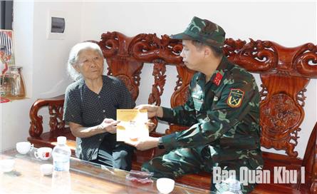Sáng 10-10, Đoàn công tác của Quân khu đã đến thăm hỏi, động viên và trao tiền hỗ trợ của Bộ tư lệnh Quân khu đến gia đình đồng chí Hạ sĩ, chiến sĩ Dương Văn Trung, thuộc Tiểu đoàn 3, Trung đoàn 246, Sư đoàn 346, có bố Dương Văn Khải, xã Phú Bình, tỉnh Thái Nguyên, tử vong do ảnh hưởng của cơn bão số 11.