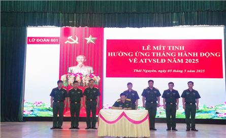 Sáng 5-5, Lữ đoàn Thông tin 601 tổ chức lễ mít tinh hưởng ứng tháng hành động về an toàn, vệ sinh lao động (ATVSLĐ) năm 2025 với chủ đề “Tăng cường đánh giá, nhận diện nguy cơ, rủi ro và chủ động triển khai các biện pháp bảo đảm an toàn, vệ sinh lao động tại nơi làm việc”. Dự và chỉ đạo có: Đại tá Nguyễn Bá Vịnh, Lữ đoàn trưởng; Đại tá Trần Quang Hùng, Bí thư Đảng ủy, Chính ủy Lữ đoàn