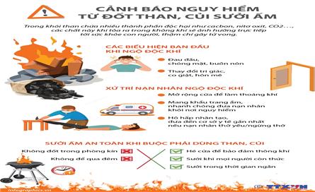 Vào những ngày giá rét, người dân cần đặc biệt thận trọng với các thiết bị sưởi ấm bằng than tổ ong, than củi. Than cháy trong điều kiện thiếu không khí sẽ tạo ra một loại khí cực độc là carbon monoxide (CO), rất nguy hiểm. Khí CO không màu, không mùi nên khi bị ngộ độc, nạn nhân thường không biết. Nạn nhân khi hít phải khí này nặng thì bị tử vong, nhẹ hơn thì để lại di chứng thần kinh-tâm thần, ảnh hưởng nghiêm trọng đến sức...