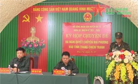 Cấp ủy Đảng, chính quyền, lực lượng vũ trang và nhân dân huyện Đại Từ, tỉnh Thái Nguyên vừa thực hành diễn tập khu vực phòng thủ với đề mục “Chuyển lực lượng vũ trang huyện vào các trạng thái sẵn sàng chiến đấu; chuyển địa phương vào các trạng thái quốc phòng, tổ chức chuẩn bị và thực hành tác chiến phòng thủ”.