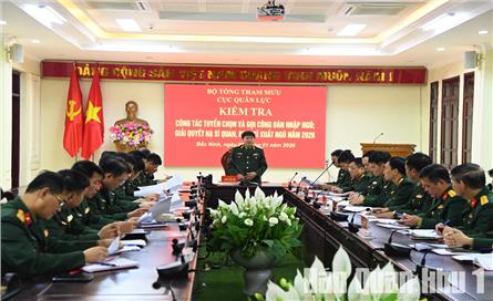Ngày 7-1, đoàn công tác của Cục Quân lực, Bộ Tổng Tham mưu do Thiếu tướng Nguyễn Thành Long, Phó Cục trưởng Cục Quân lực làm Trưởng đoàn đã tiến hành kiểm tra công tác tuyển chọn và gọi công dân nhập ngũ; công tác giải quyết hạ sĩ quan, binh sĩ xuất ngũ năm 2026 tại tỉnh Bắc Ninh.