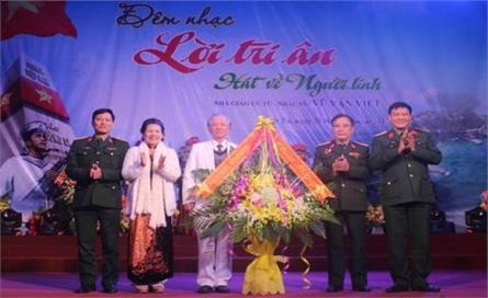 QK2- Tối 20-12, Liên hiệp Văn học nghệ thuật và Hội Hỗ trợ gia đình liệt sĩ tỉnh Phú Thọ phối hợp tổ chức đêm nhạc: “Lời tri ân hát về người lính” nhằm tôn vinh các tác phẩm âm nhạc của NGƯT, nhạc sĩ Vũ Văn Viết, Chi hội trưởng Hội Nhạc sĩ Việt Nam tỉnh Phú Thọ.