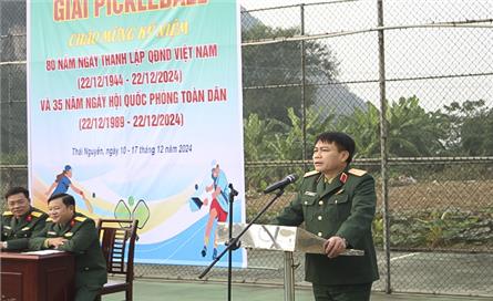 Ngày 10-12, nhân kỷ niệm 80 năm Ngày thành lập Quân đội nhân dân Việt Nam (22-12-1944/22-12-2024) và 35 năm Ngày hội Quốc phòng toàn dân (22-12-1989/22-12-2024), Cục Chính trị khai mạc giải thi đấu Pickleball giữa các cơ quan đơn vị. Thiếu tướng Ngô Hồng Thái, Phó Chủ nhiệm Chính trị Quân khu dự và phát biểu khai mạc.