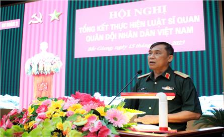 Sáng 9-8, Bộ CHQS tỉnh Bắc Giang tổ chức tổng kết thực hiện Luật Sĩ quan Quân đội nhân dân (QĐND) Việt Nam. Thiếu tướng Lê Anh Tuấn, Phó tư lệnh Quân khu dự và phát biểu chỉ đạo.