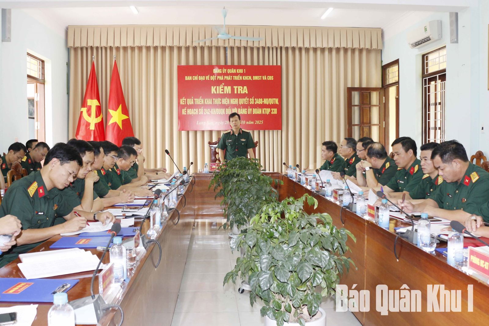 Ngày 28-10, Ban chỉ đạo đột phá phát triển khoa học công nghệ (KHCN), đổi mới sáng tạo (ĐMST) và chuyển đổi số (CĐS) Quân khu do Thiếu tướng Đàm Minh Tuân, Phó Tư lệnh Quân khu làm trưởng đoàn đã kiểm tra việc triển khai thực hiện Nghị quyết số 3488-NQ/QUTW của Quân ủy Trung ương; kế hoạch số 242-KH/ĐU của Đảng ủy Quân khu đối với Bộ CHQS tỉnh Lạng Sơn và Đoàn KT-QP 338.