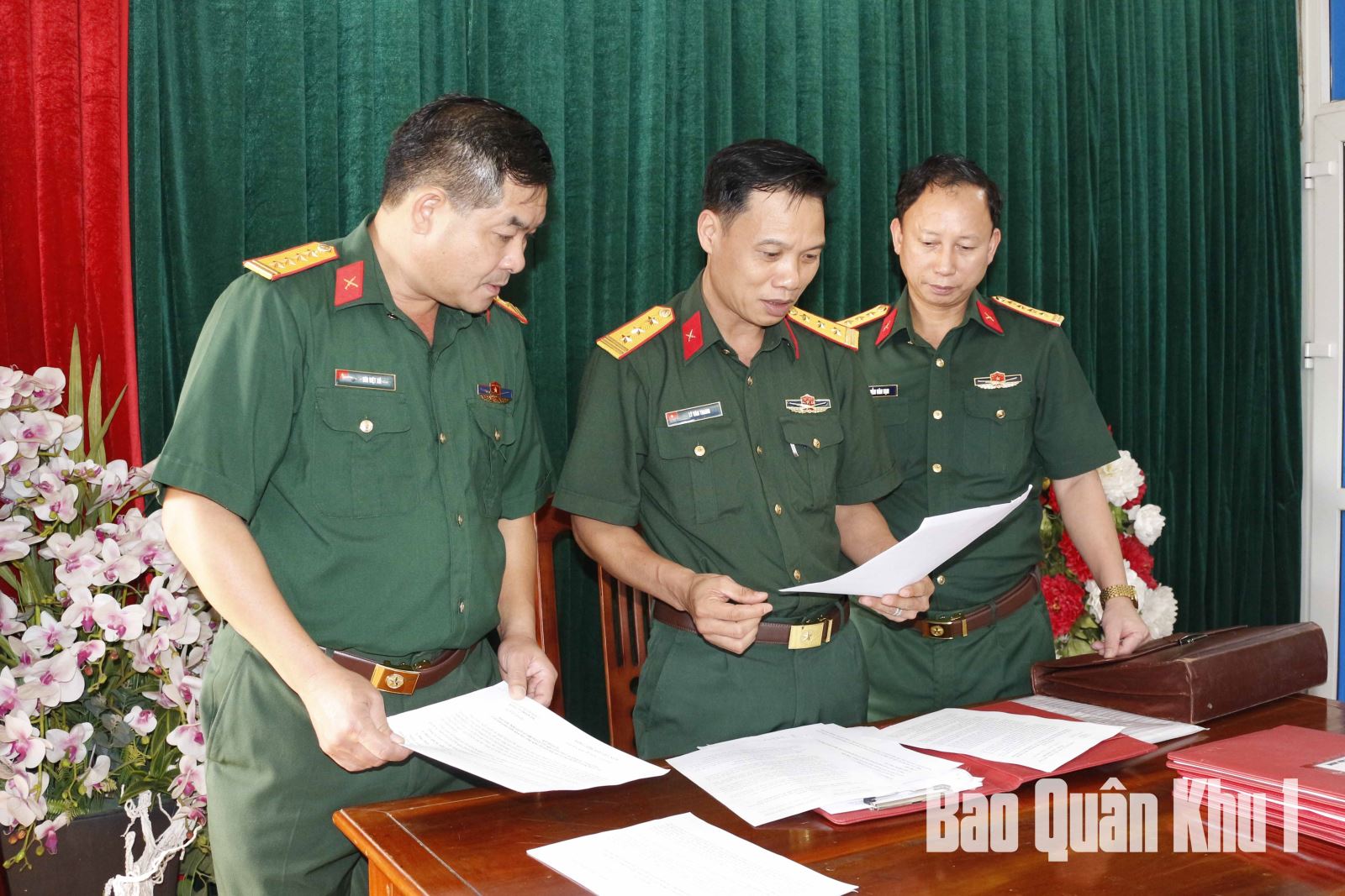 Tham gia cùng đoàn công tác có: Đại tá Đặng Văn Tuân, Phó Tham mưu trưởng Quân khu; đại biểu các phòng chức năng Quân khu.
