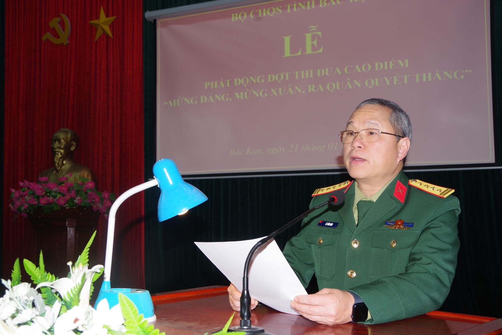 Đại tá Lã Văn Hào, Phó Bí thư Thường trực Đảng uỷ, Chính uỷ Bộ CHQS tỉnh Bắc Kạn phát động thi đua cao điểm.