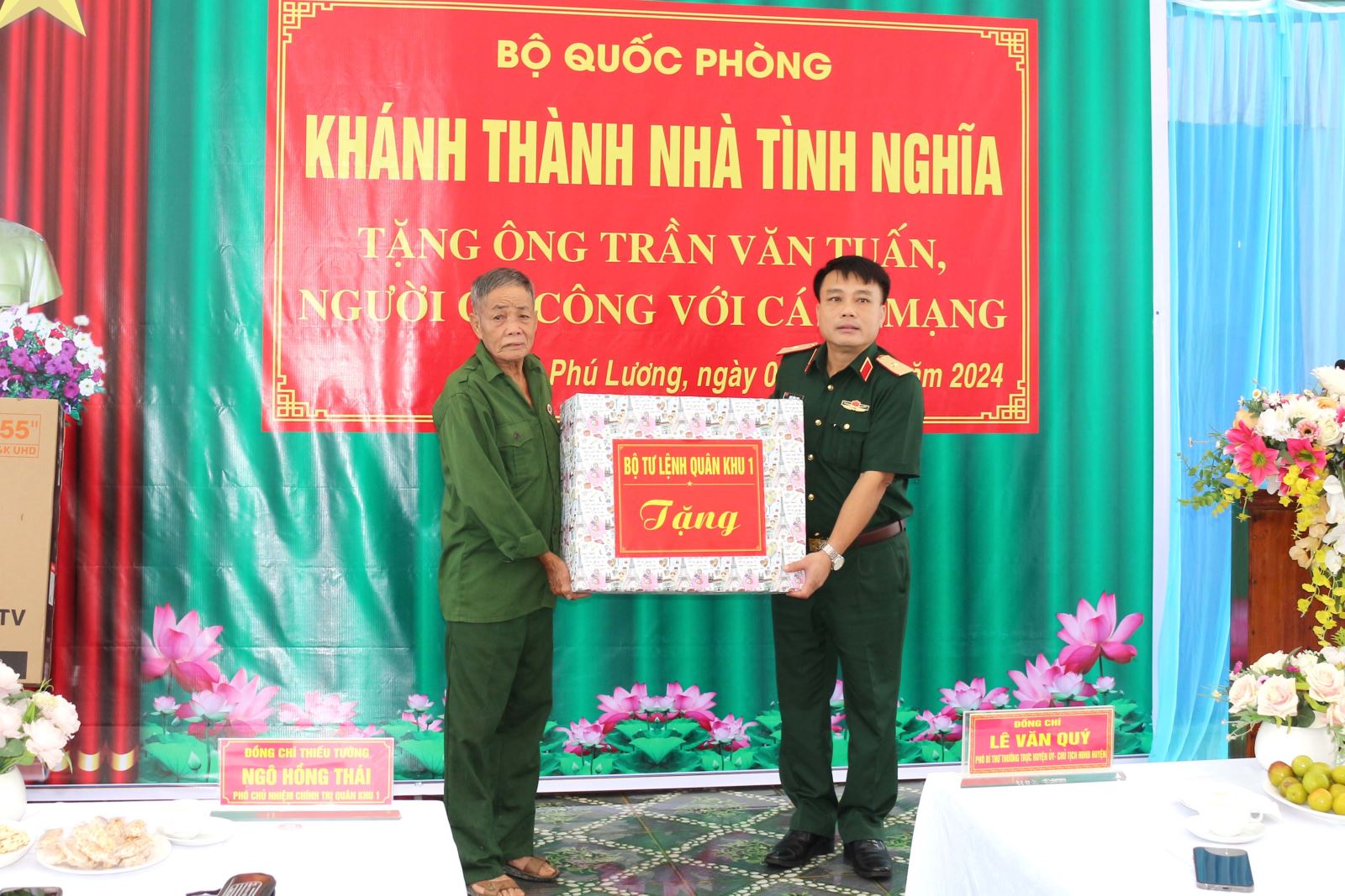 Tại buổi lễ, Thiếu tướng Ngô Hồng Thái, Phó chủ nhiệm Chính trị Quân khu đã trao quyết định hỗ trợ xây dựng nhà tình nghĩa tặng gia đình ông Trần Văn Tuấn. Nhân dịp này, Bộ tư lệnh Quân khu; Trung tâm Phát thanh - Truyền hình Quân đội; Viettel Thái Nguyên; Bộ CHQS tỉnh Thái Nguyên; Ban CHQS huyện Phú Lương; cấp ủy, chính quyền địa phương, cùng các ban, ngành, đoàn thể đã trao tặng gia đình nhiều phần quà ý nghĩa, bằng tiền và hiện vật, góp phần giúp gia đình ông Trần Văn Tuấn ổn định cuộc sống trong căn nhà mới.