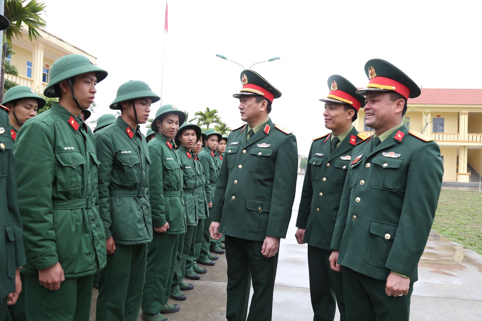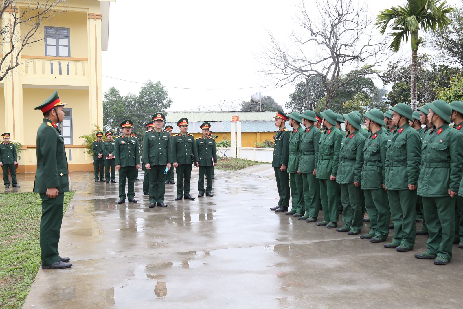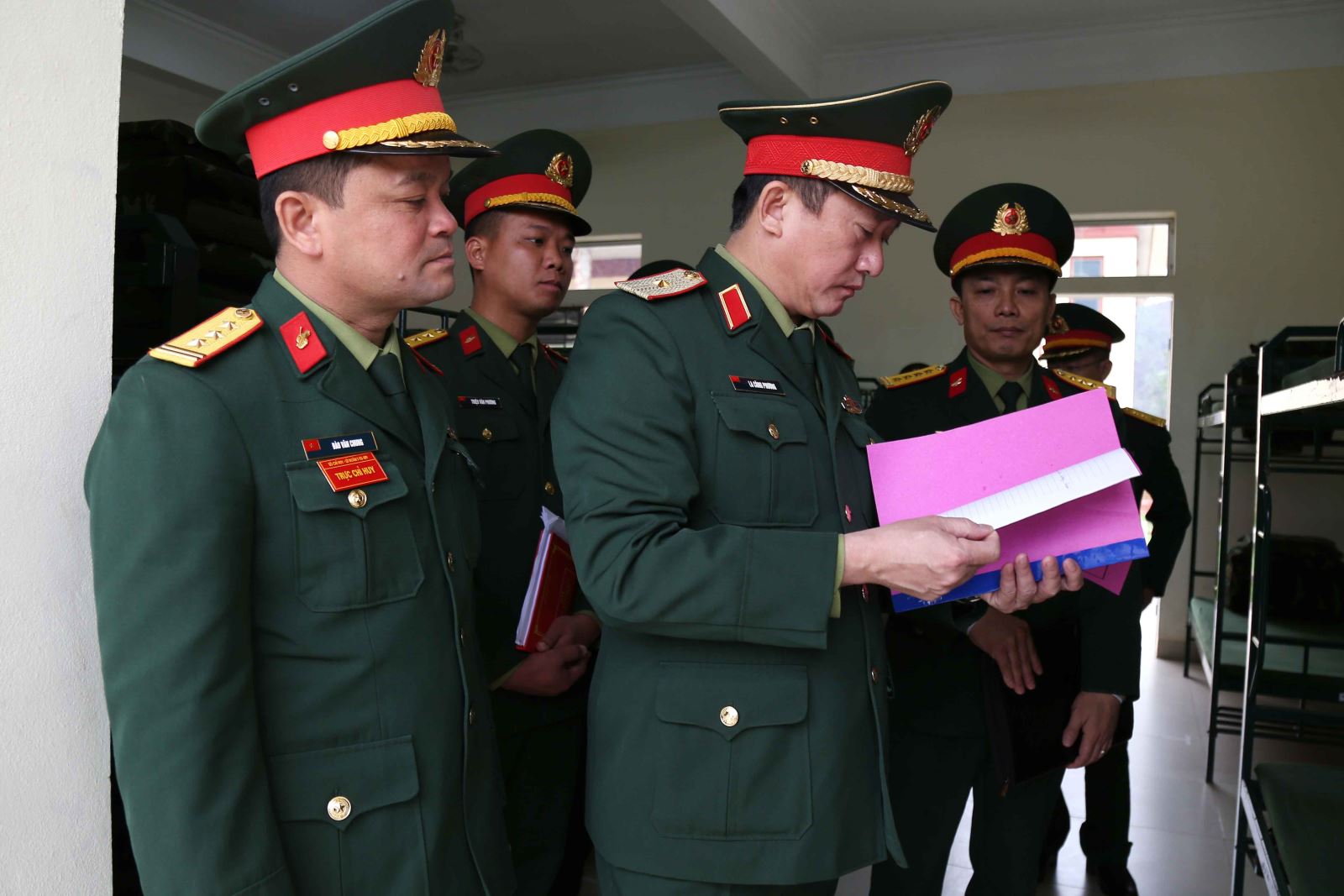Tại đơn vị đoàn công tác tiến hành kiểm tra nơi ăn ở, sinh hoạt, sắp đặt nội vụ, nắm tình hình, tâm tư nguyện vọng của chiến sĩ mới và kiểm tra sổ sách hoạt động công tác Đảng, công tác giáo dục chính trị.
