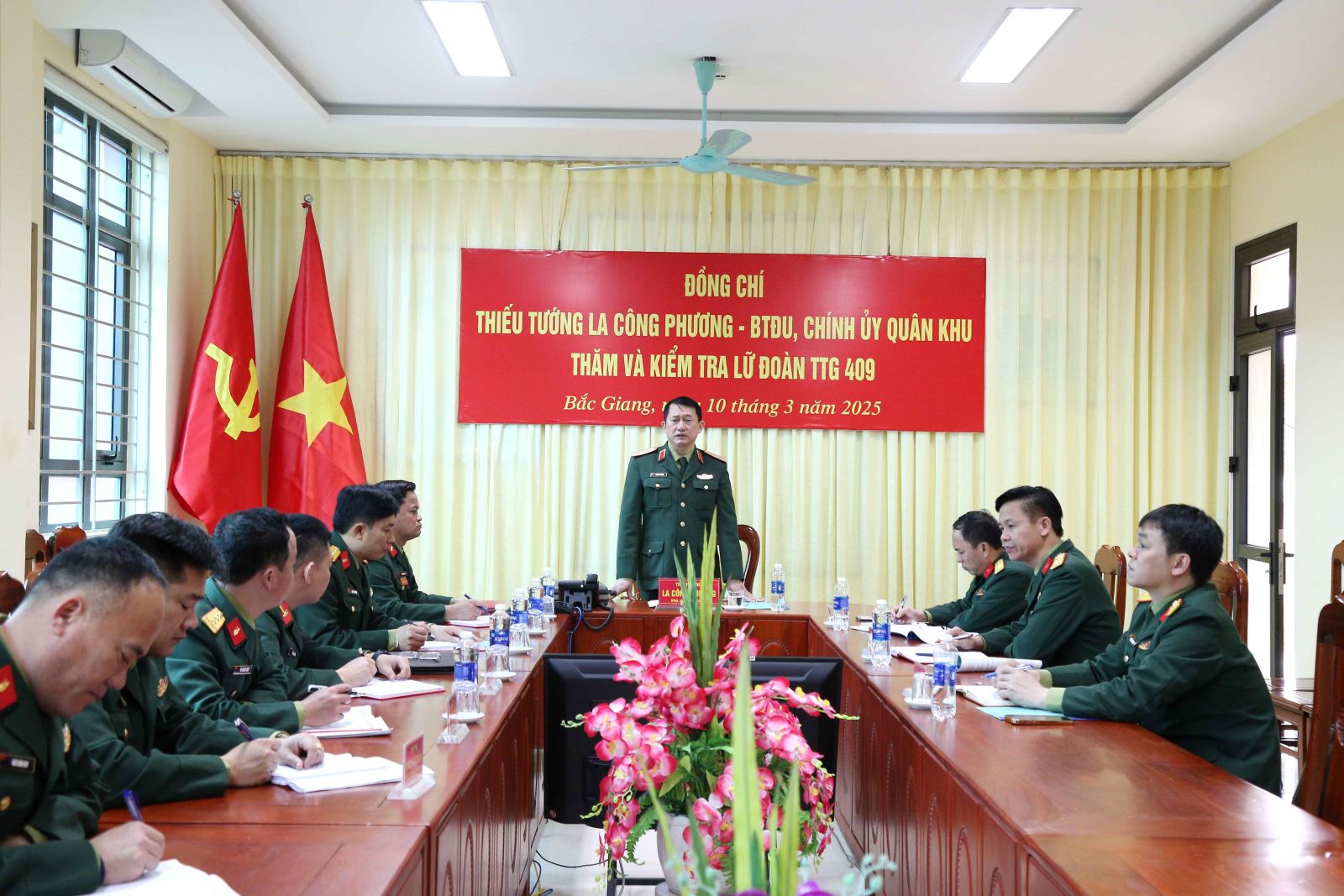 Ngày 10-3, đoàn công tác Quân khu do Thiếu tướng La Công Phương, Bí thư Đảng ủy, Chính ủy Quân khu làm trưởng đoàn đã tiến hành kiểm tra, nắm tình hình tại Lữ đoàn 409 trọng tâm là hoạt động công tác Đảng, công tác giáo dục chính trị.