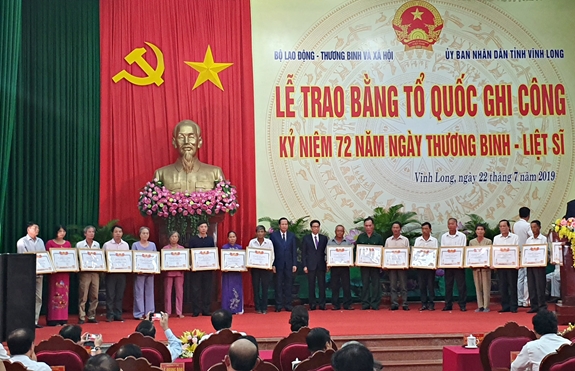 Kỷ niệm 72 năm Ngày Thương binh - Liệt sĩ, sáng 22-7, tại tỉnh Vĩnh Long, Bộ Lao động Thương binh và Xã hội, Ủy ban nhân dân tỉnh Vĩnh Long đã tổ chức Lễ trao Bằng Tổ quốc ghi công cho 72 thân nhân liệt sĩ, đại diện cho 468 thân nhân liệt sĩ trong cả nước.
