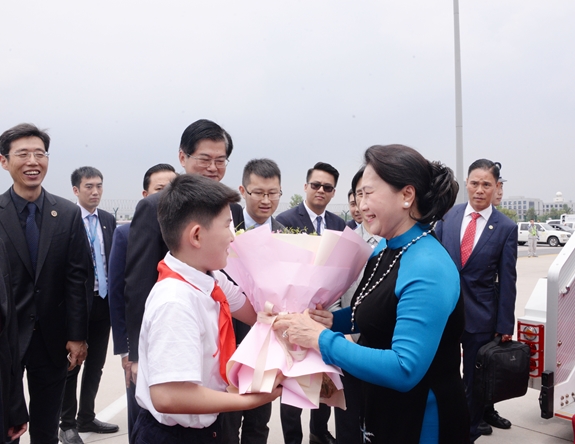 Chủ tịch Quốc hội Nguyễn Thị Kim Ngân tới sân bay Lộc Khẩu, bắt đầu thăm chính thức Trung Quốc.